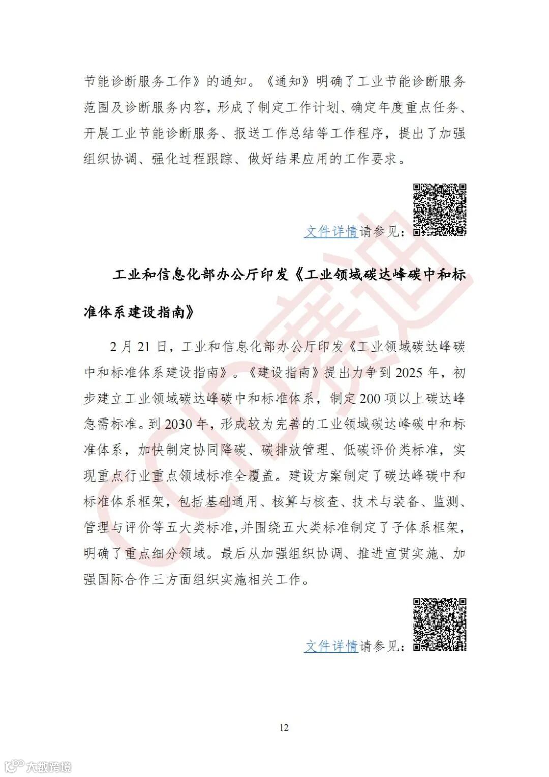 工业和信息化部办公厅印发《工业领域碳达峰碳中和标准体系建设指南》