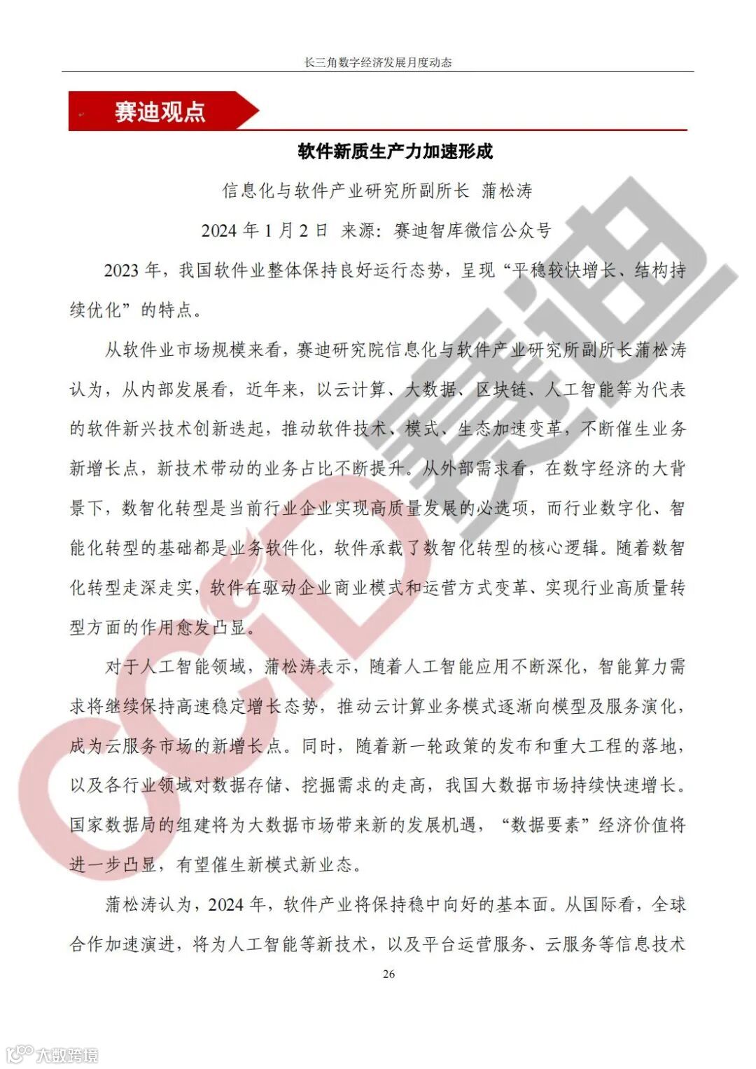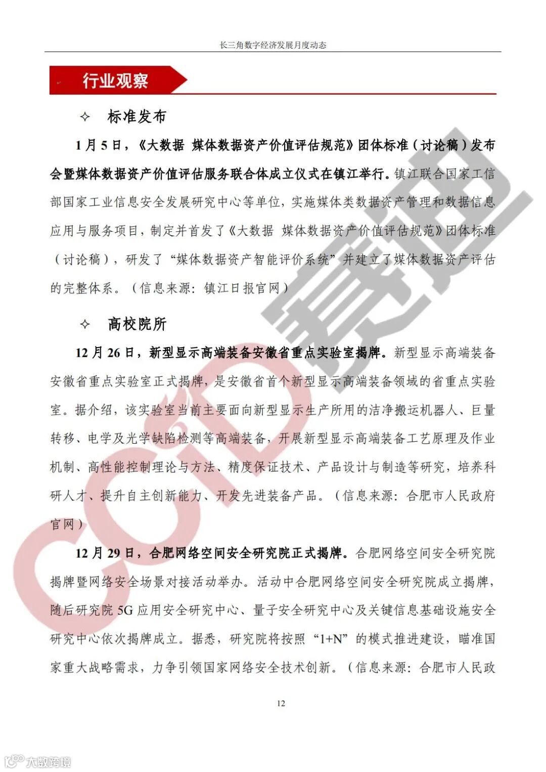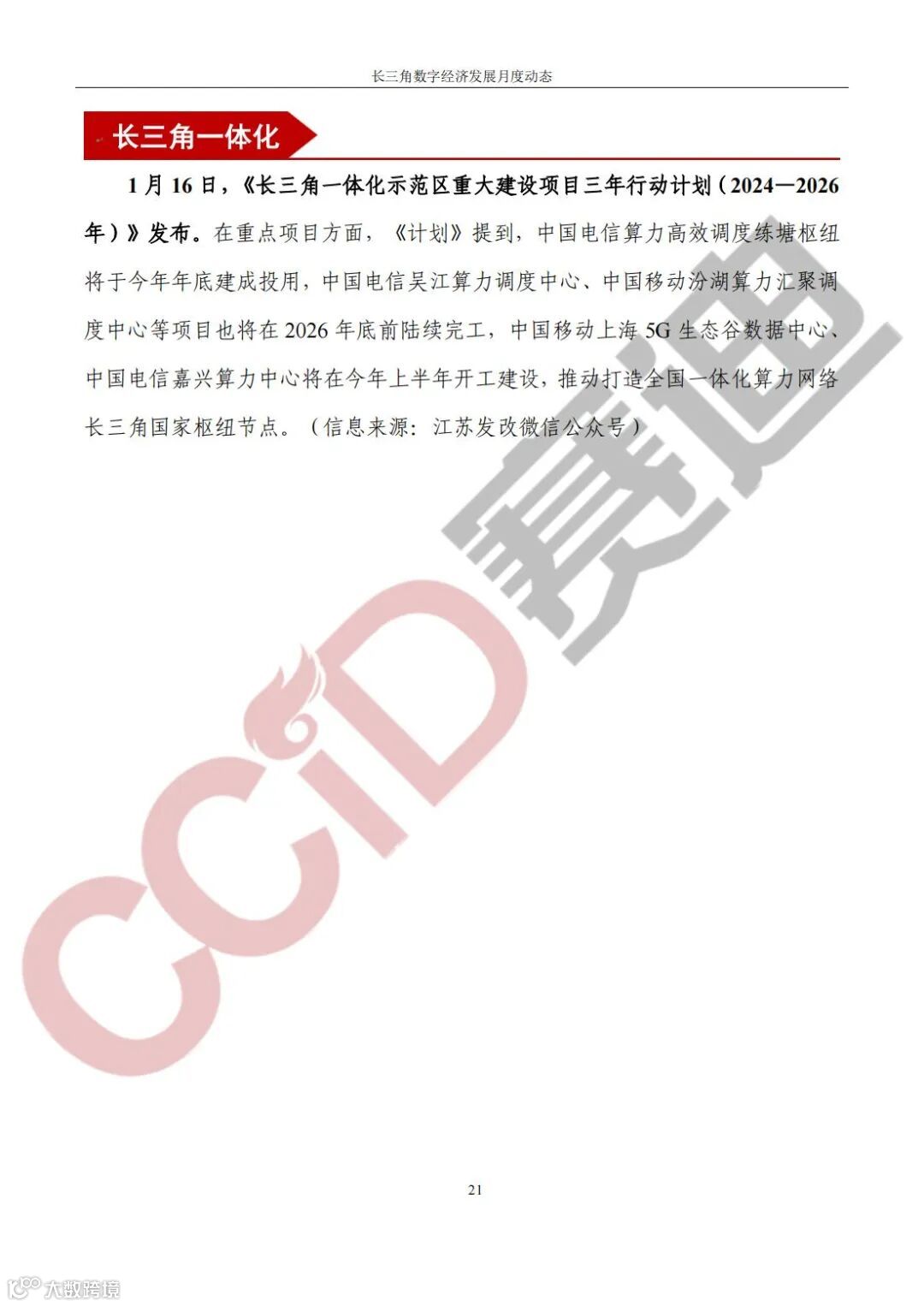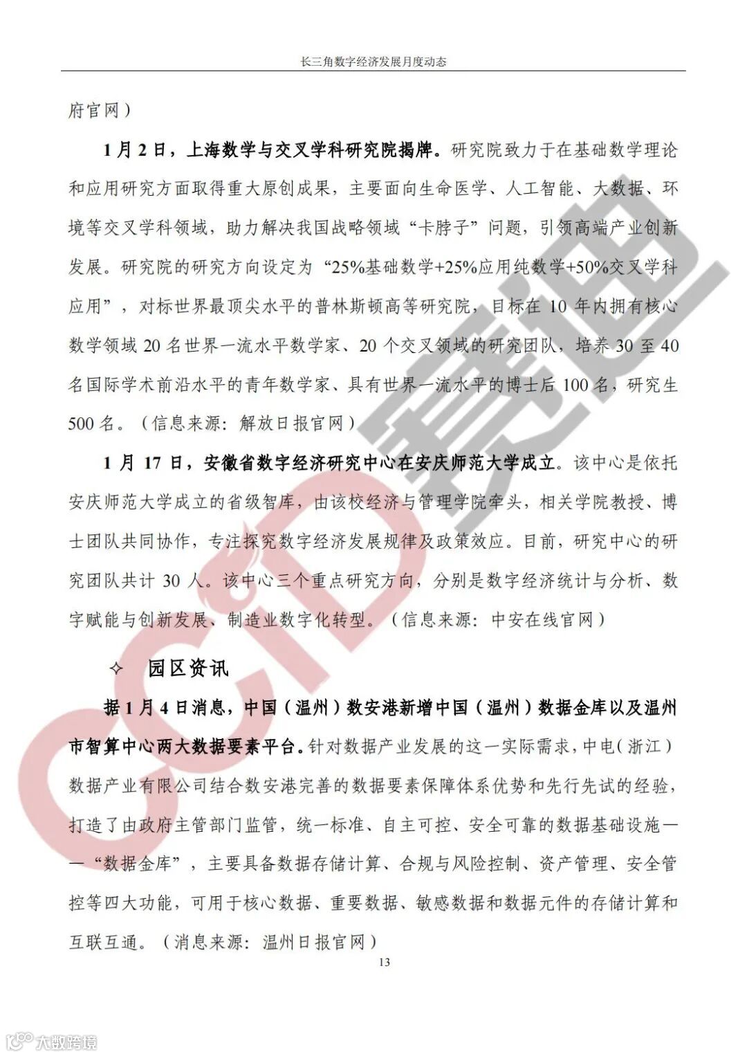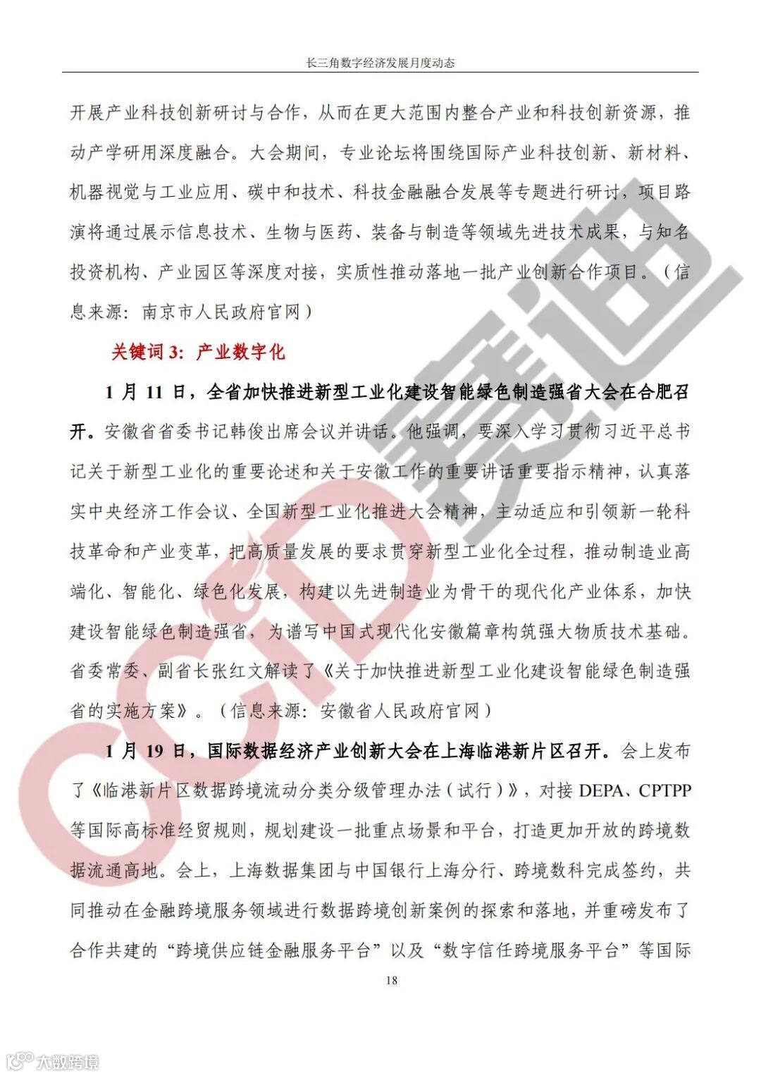 《长三角数字经济发展月度动态》2024年第1期来啦!本刊物由赛迪数字经济研究中心创办,重点聚焦《长江三角洲区域一体化发展规划纲要》中涵盖的27个中心区城市,以数字经济相关领域月度主要发展动态为主题,从数据洞察、政策汇集、行业观察、城市动态、长三角一体化、访谈讲话、赛迪观点等多个维度展现长三角数字经济的区域发展态势,进而为地方关切提供参考依据,助力地方经济社会发展。