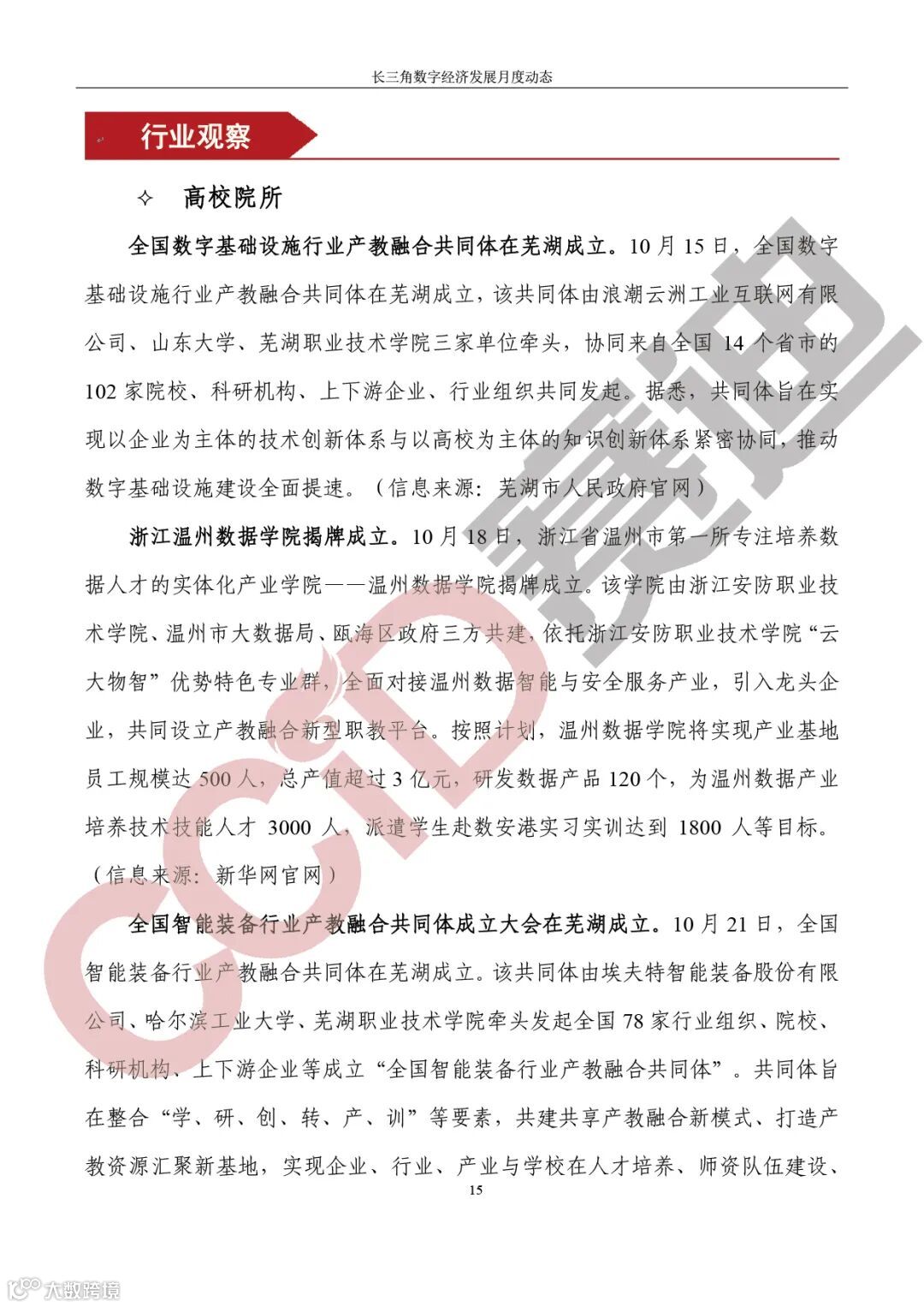 高校院所,全国数字基础设施行业产教融合共同体在芜湖成立;温州市首所专注培养数据人才的实体化产业学院,温州数据学院揭牌成立;全国智能装备行业产教融合共同体成立大会在芜湖成立。