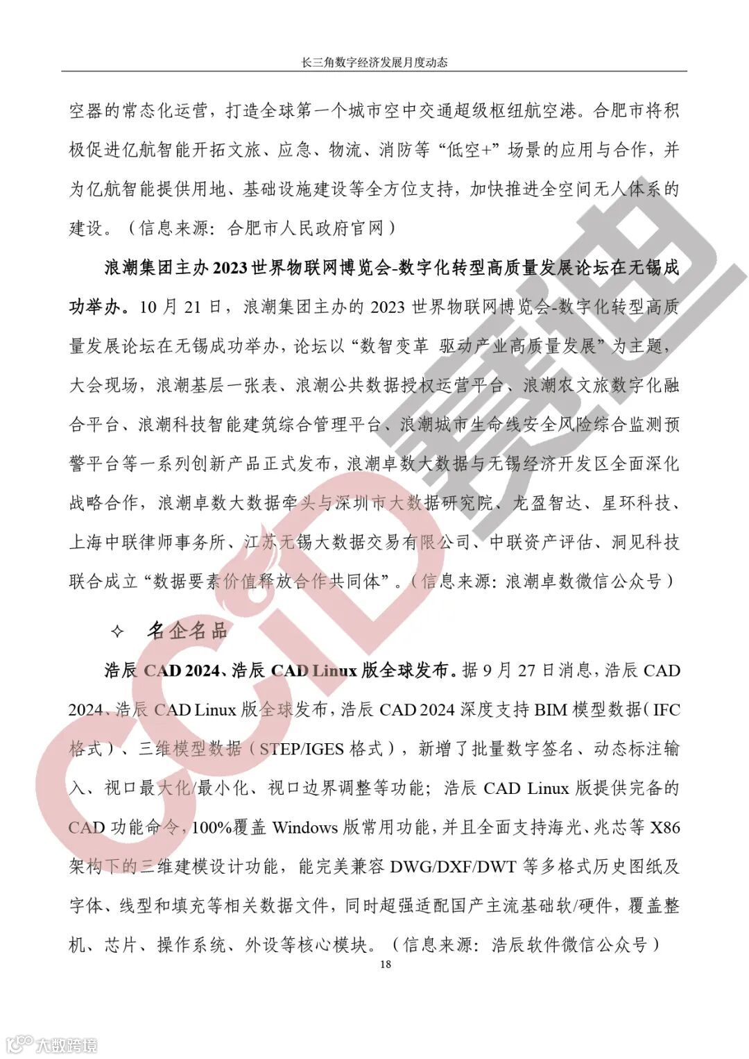 企业动态,莱赛激光北交所IPO过会;本源量子计算科技(合肥)股份有限公司国产量子计算机核心部件稀释制冷机成功下线;亿航智能拟在合肥设立华东区域总部;浪潮集团主办2023世界物联网博览会-数字化转型高质量发展论坛在无锡成功举办。名企名品,浩辰CAD 2024、浩辰CAD Linux版全球发布;同元软控联合推出全新版本核能系统数字化与数字孪生支撑平台NUMAP V2.0;中国首款量子计算机VR教学体验系统发布。