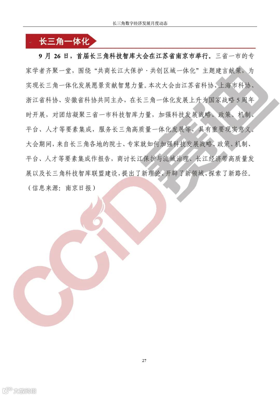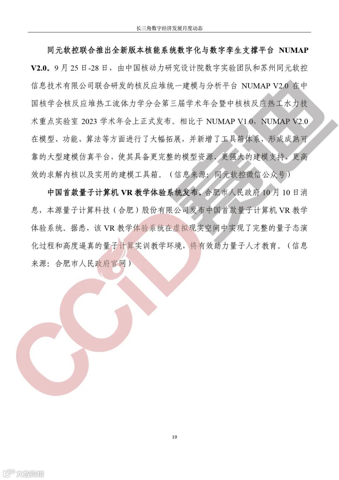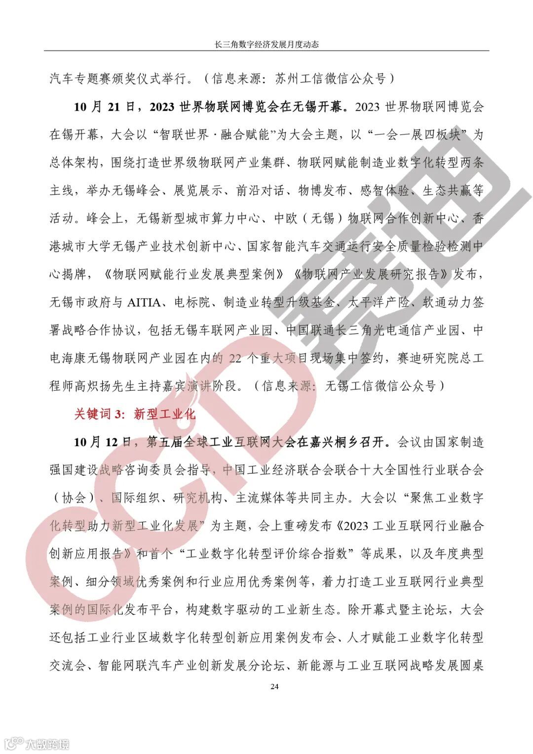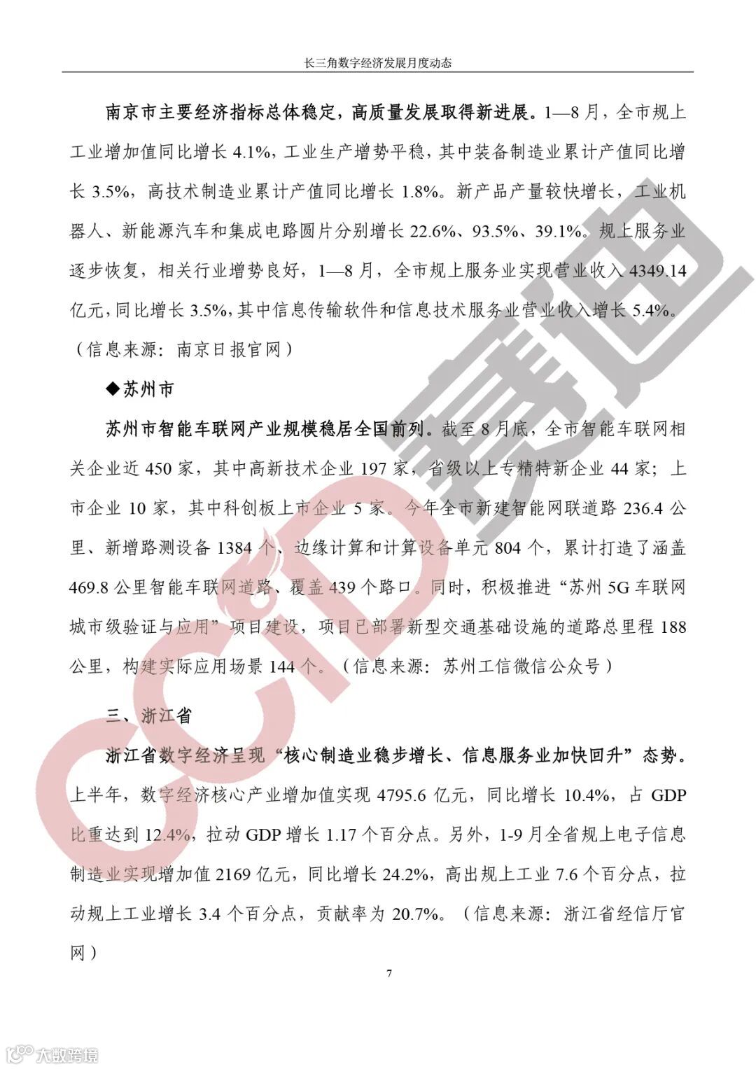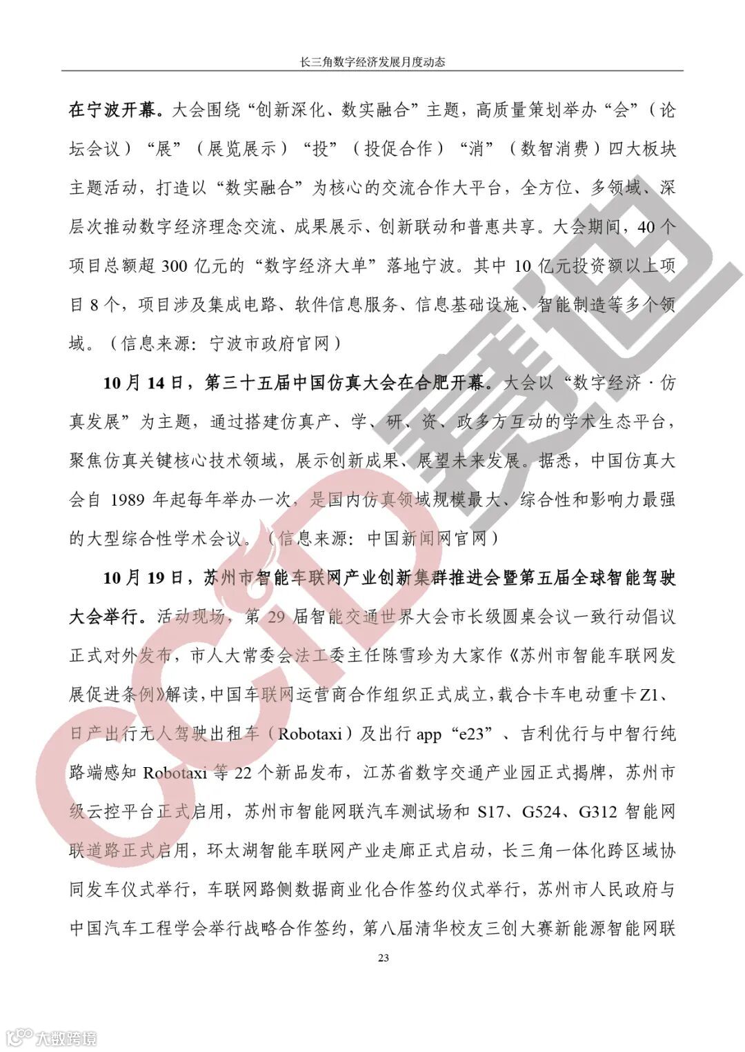 《长三角数字经济发展月度动态》2023年第10期来啦!本刊物由赛迪数字经济研究中心创办,重点聚焦《长江三角洲区域一体化发展规划纲要》中涵盖的27个中心区城市,以数字经济相关领域月度主要发展动态为主题,从数据洞察、政策汇集、行业观察、城市动态、长三角一体化、访谈讲话、赛迪观点等多个维度展现长三角数字经济的区域发展态势,进而为地方关切提供参考依据,助力地方经济社会发展。