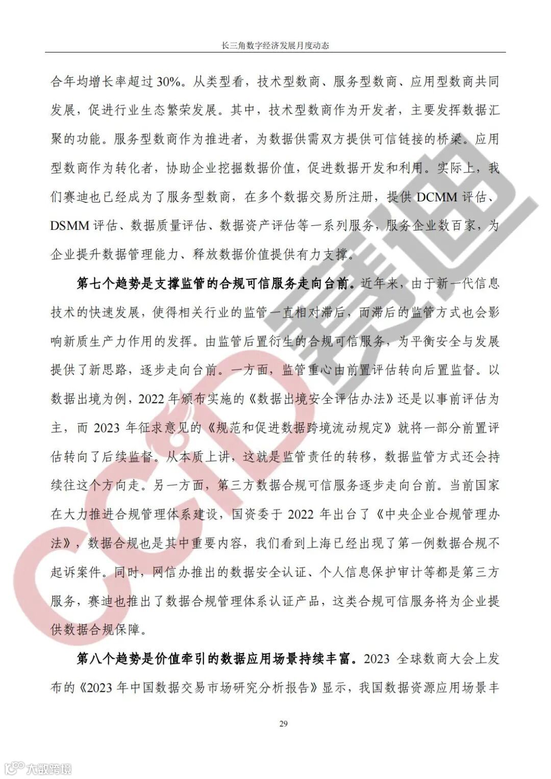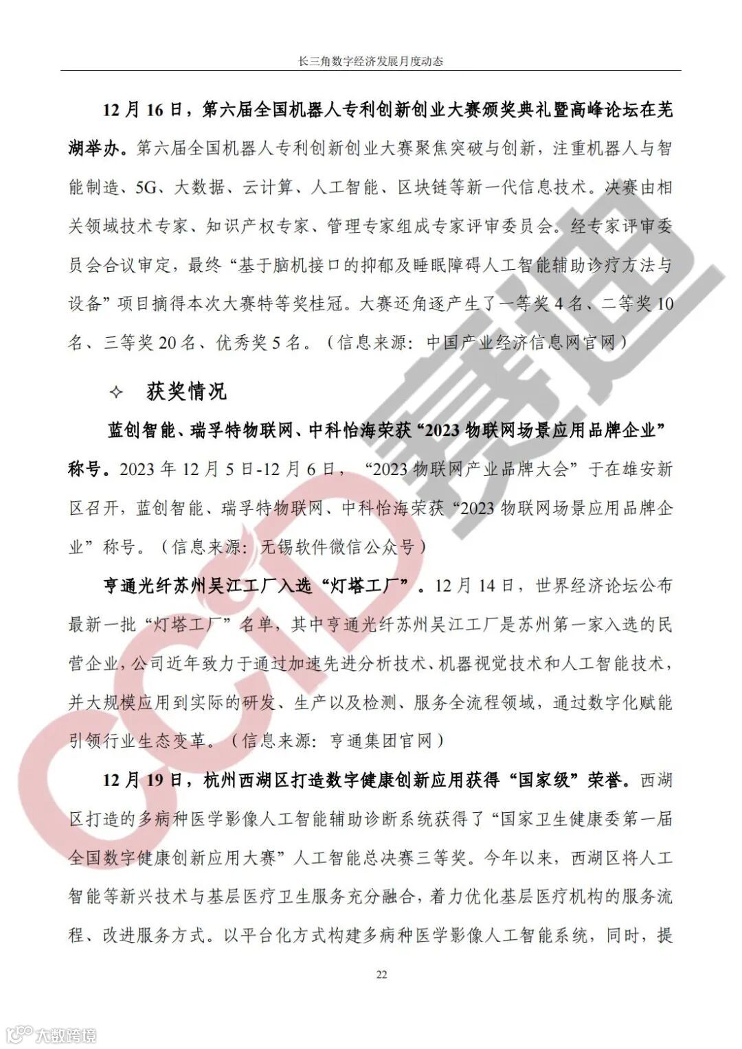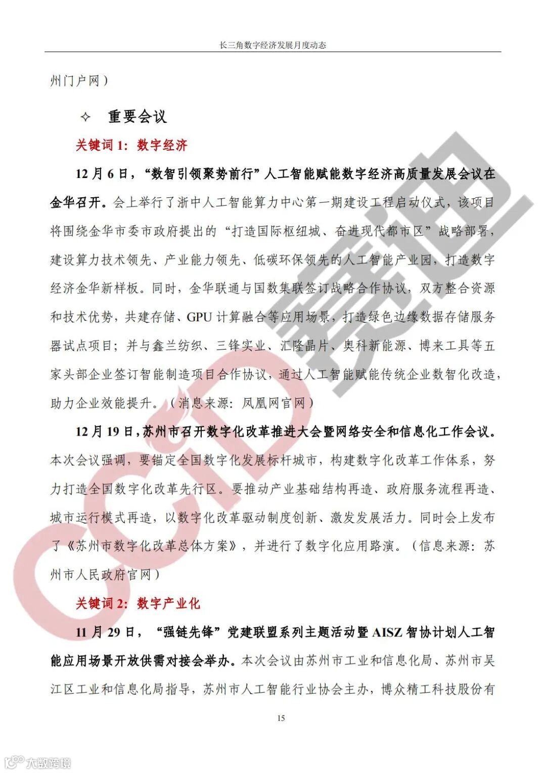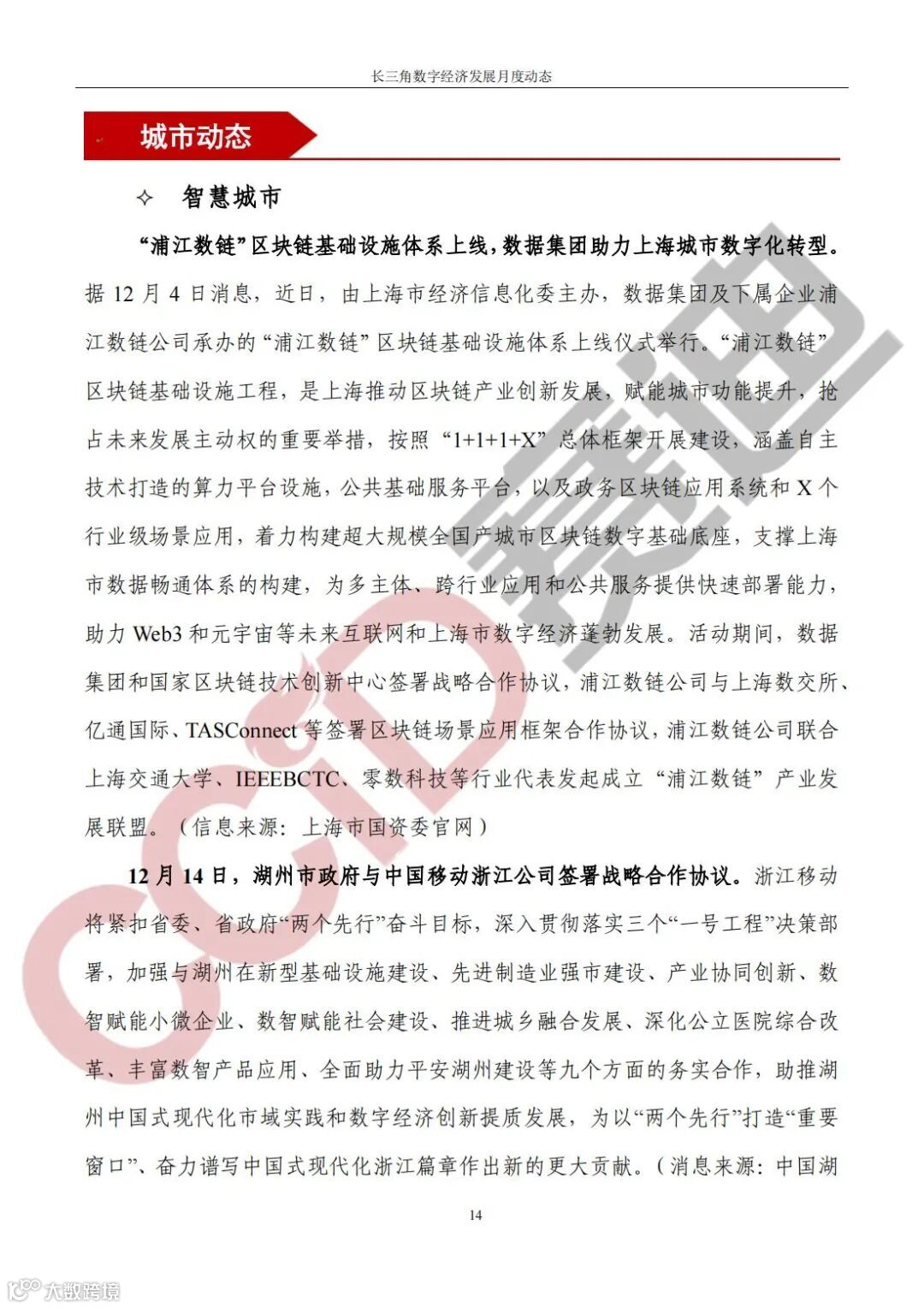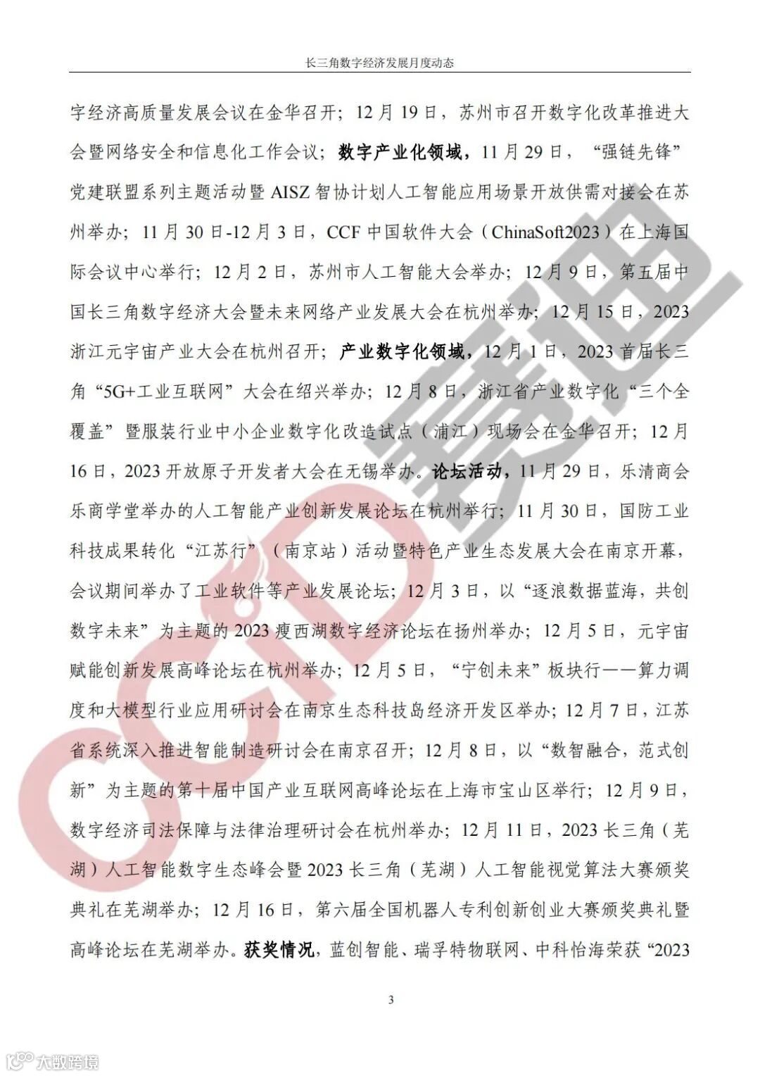 《长三角数字经济发展月度动态》2023年第12期来啦!本刊物由赛迪数字经济研究中心创办,重点聚焦《长江三角洲区域一体化发展规划纲要》中涵盖的27个中心区城市,以数字经济相关领域月度主要发展动态为主题,从数据洞察、政策汇集、行业观察、城市动态、长三角一体化、访谈讲话、赛迪观点等多个维度展现长三角数字经济的区域发展态势,进而为地方关切提供参考依据,助力地方经济社会发展。