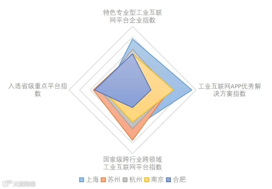 图4.3.7 长三角城市工业互联网平台建设指数前五名城市特色分布