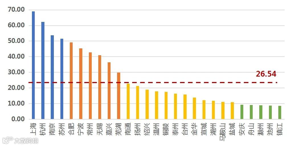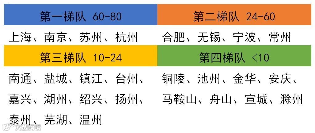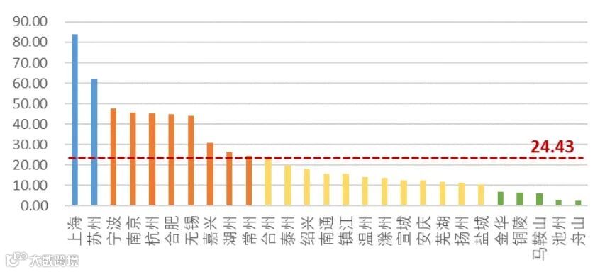 图4.5.1 长三角城市工业互联网生态环境指数梯队分布