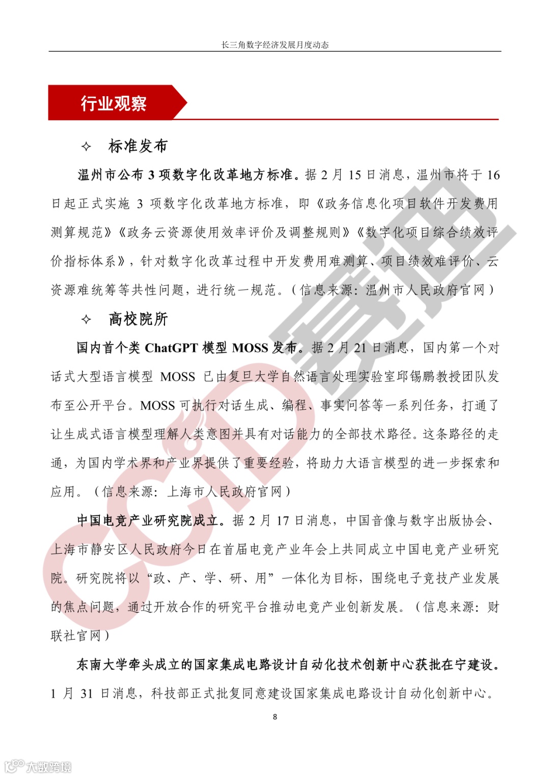 高校院所,国内首个类ChatGPT模型MOSS发布;中国电竞产业研究院成立;东南大学牵头成立的国家集成电路设计自动化技术创新中心获批在宁建设。