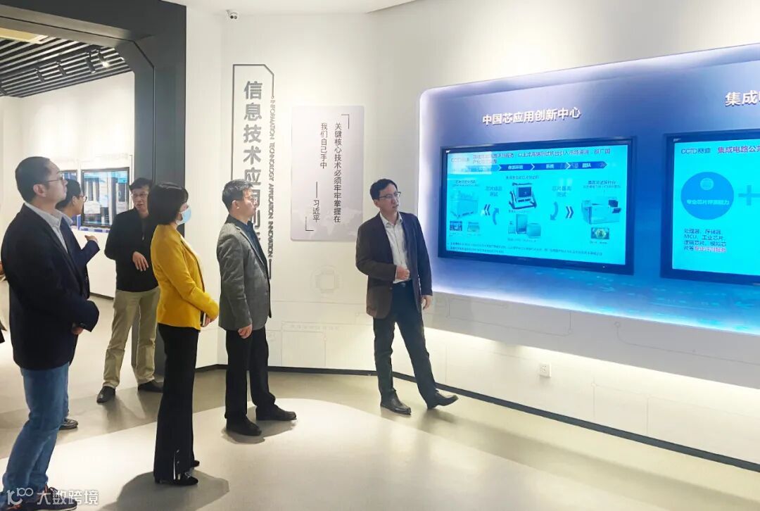 来访贵宾参观了中国芯应用创新中心实验室和苏州赛迪展厅。苏州赛迪公司副总经理周萌介绍了实验室载体建设、测试设备配置和芯片检测业务状况。