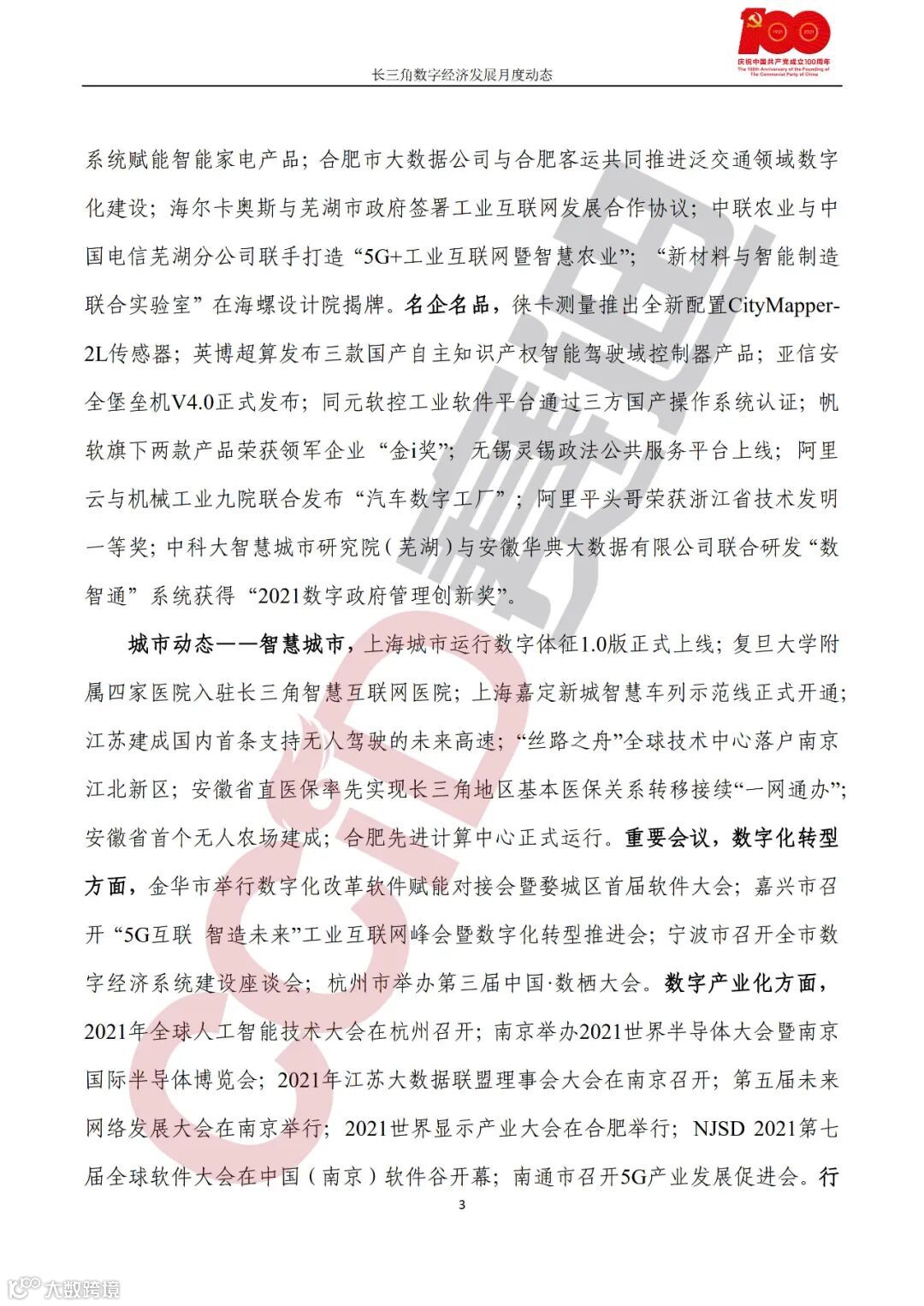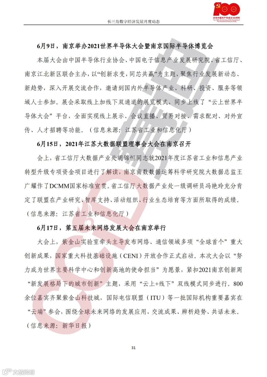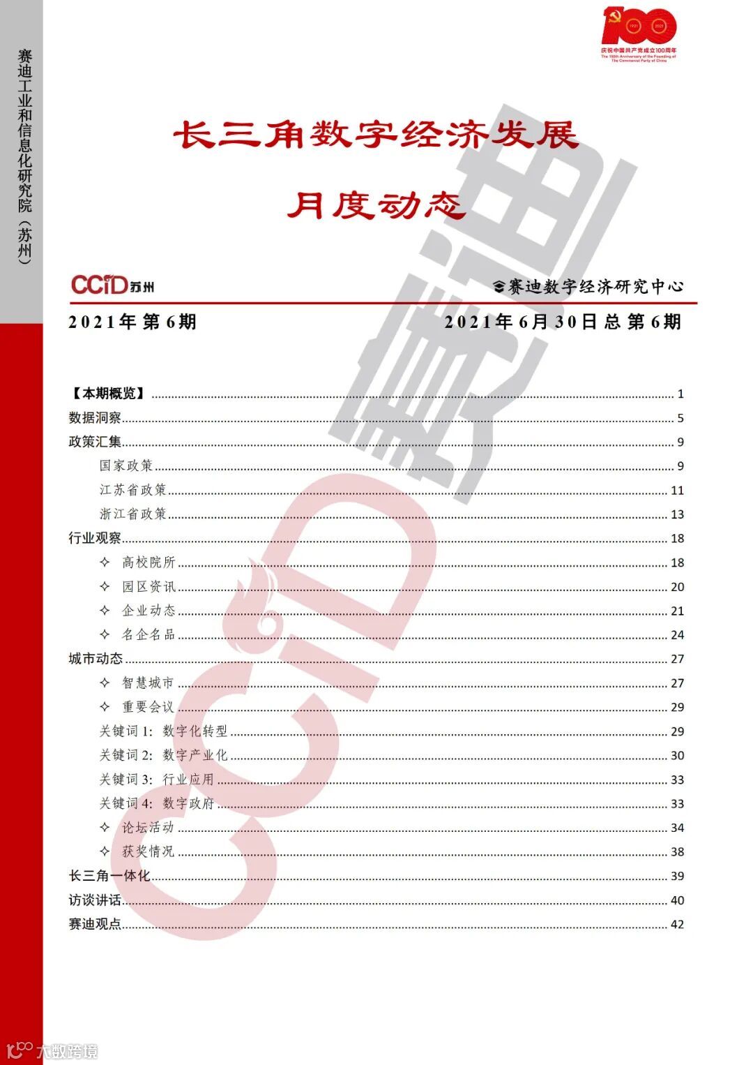 《长三角数字经济发展月度动态》2021年第6期来啦!本刊物由赛迪数字经济研究中心创办,重点聚焦《长江三角洲区域一体化发展规划纲要》中涵盖的27个中心区城市,以数字经济相关领域月度主要发展动态为主题,从数据洞察、政策汇集、行业观察、城市动态、长三角一体化、访谈讲话、赛迪观点等多个维度展现长三角数字经济的区域发展态势,进而为地方关切提供参考依据,助力地方经济社会发展。