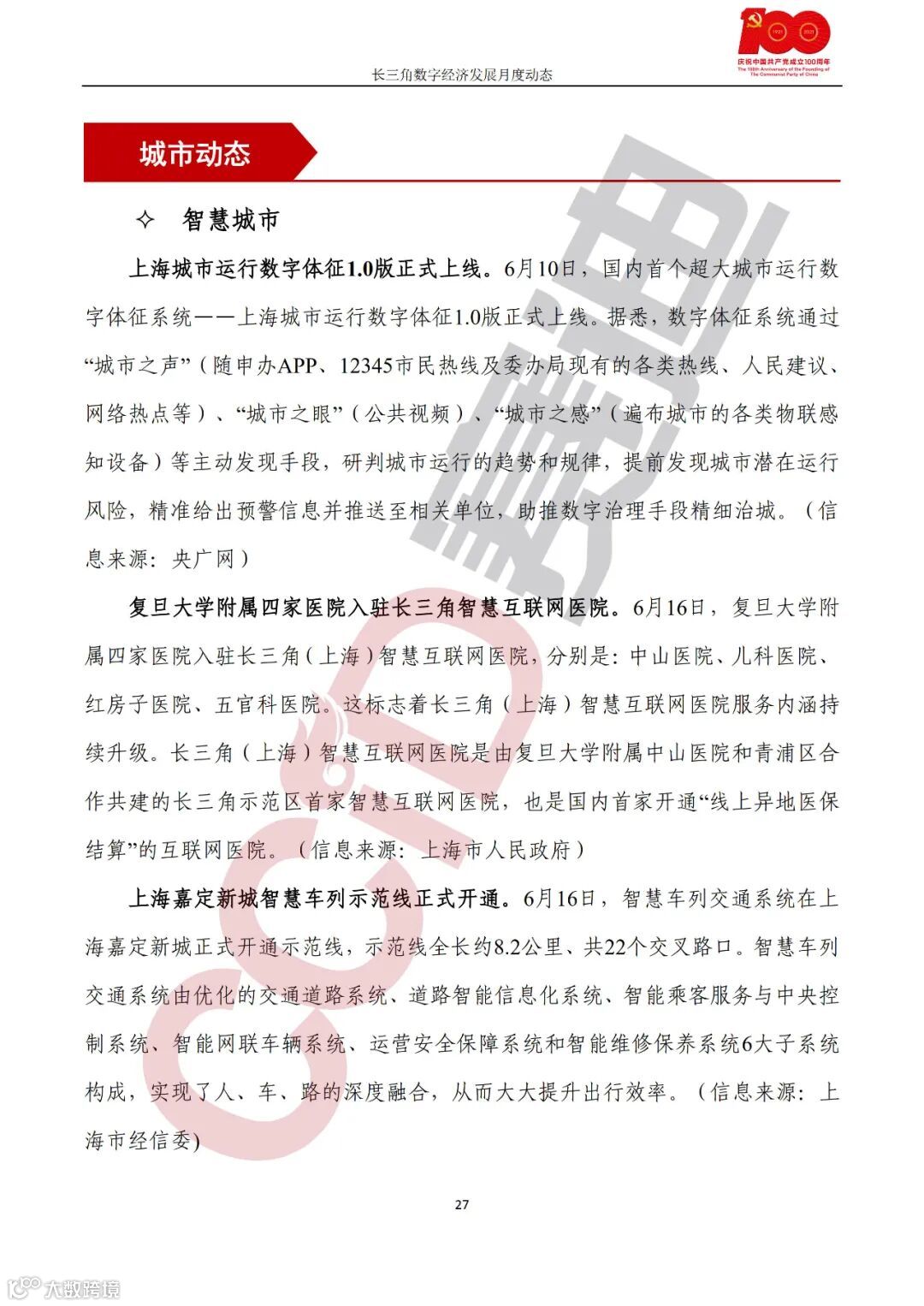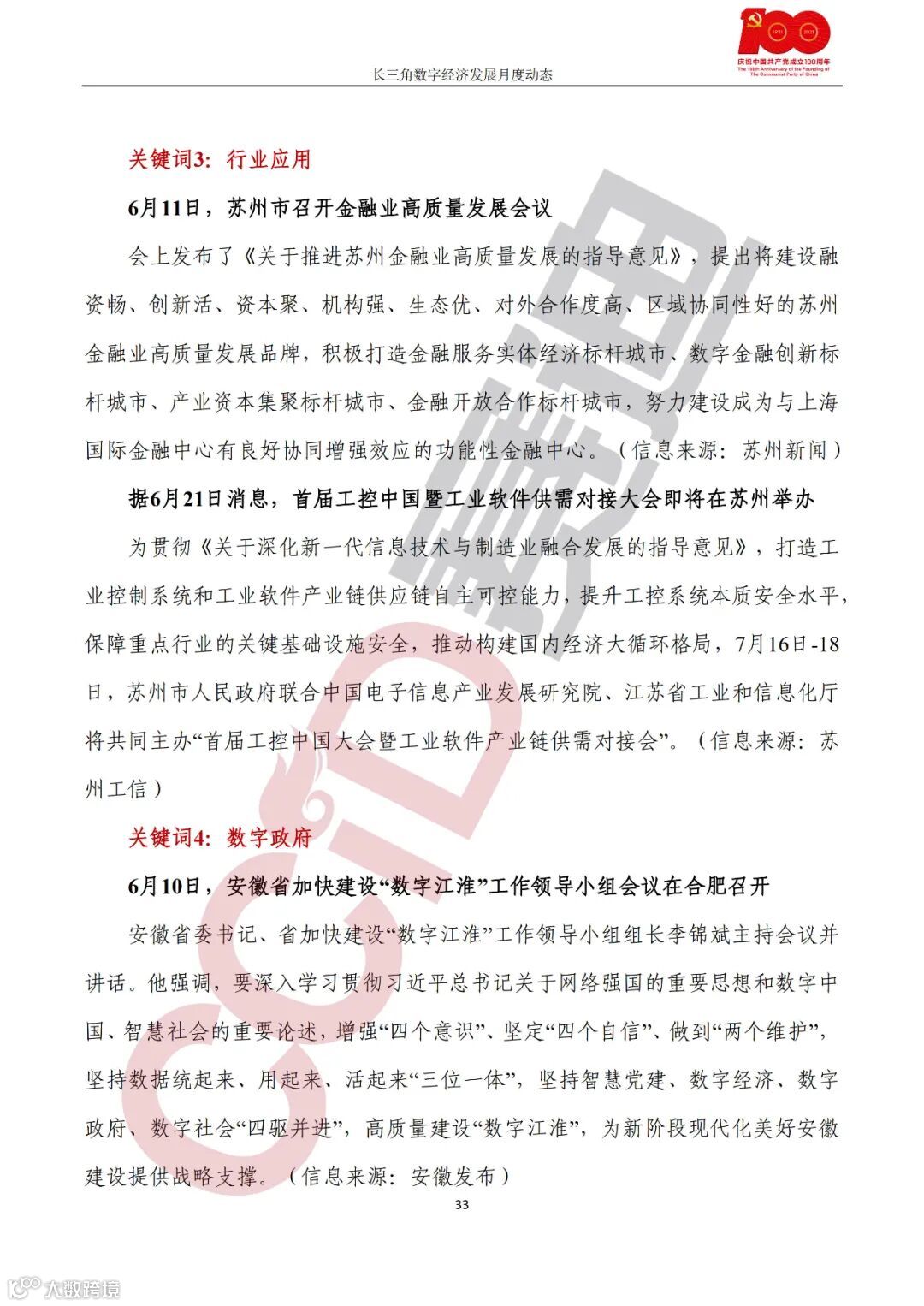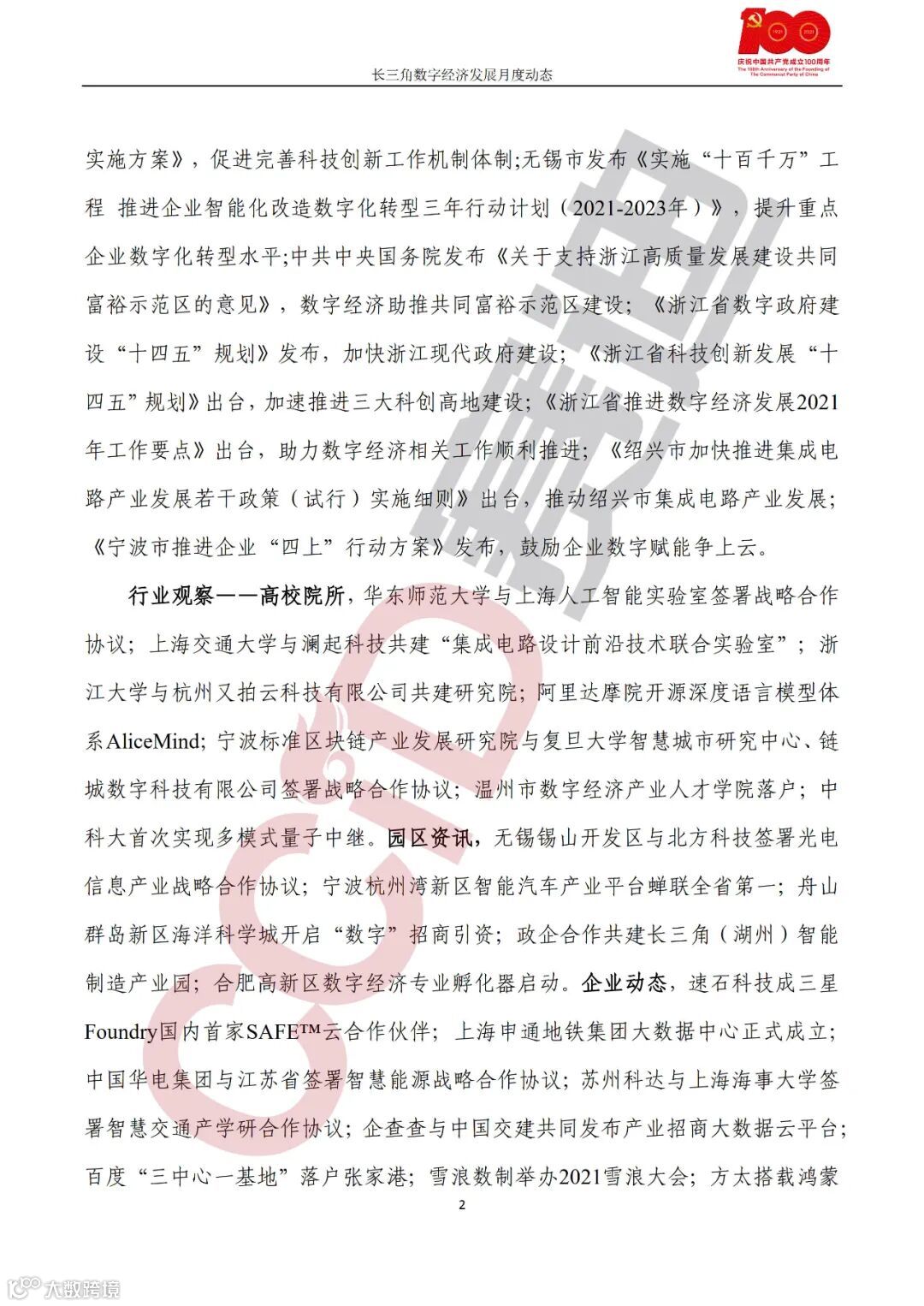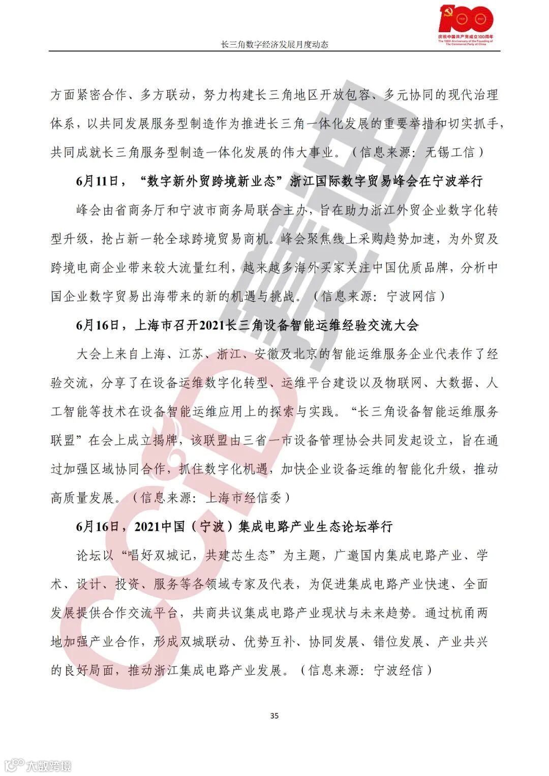 《长三角数字经济发展月度动态》2021年第6期来啦!本刊物由赛迪数字经济研究中心创办,重点聚焦《长江三角洲区域一体化发展规划纲要》中涵盖的27个中心区城市,以数字经济相关领域月度主要发展动态为主题,从数据洞察、政策汇集、行业观察、城市动态、长三角一体化、访谈讲话、赛迪观点等多个维度展现长三角数字经济的区域发展态势,进而为地方关切提供参考依据,助力地方经济社会发展。