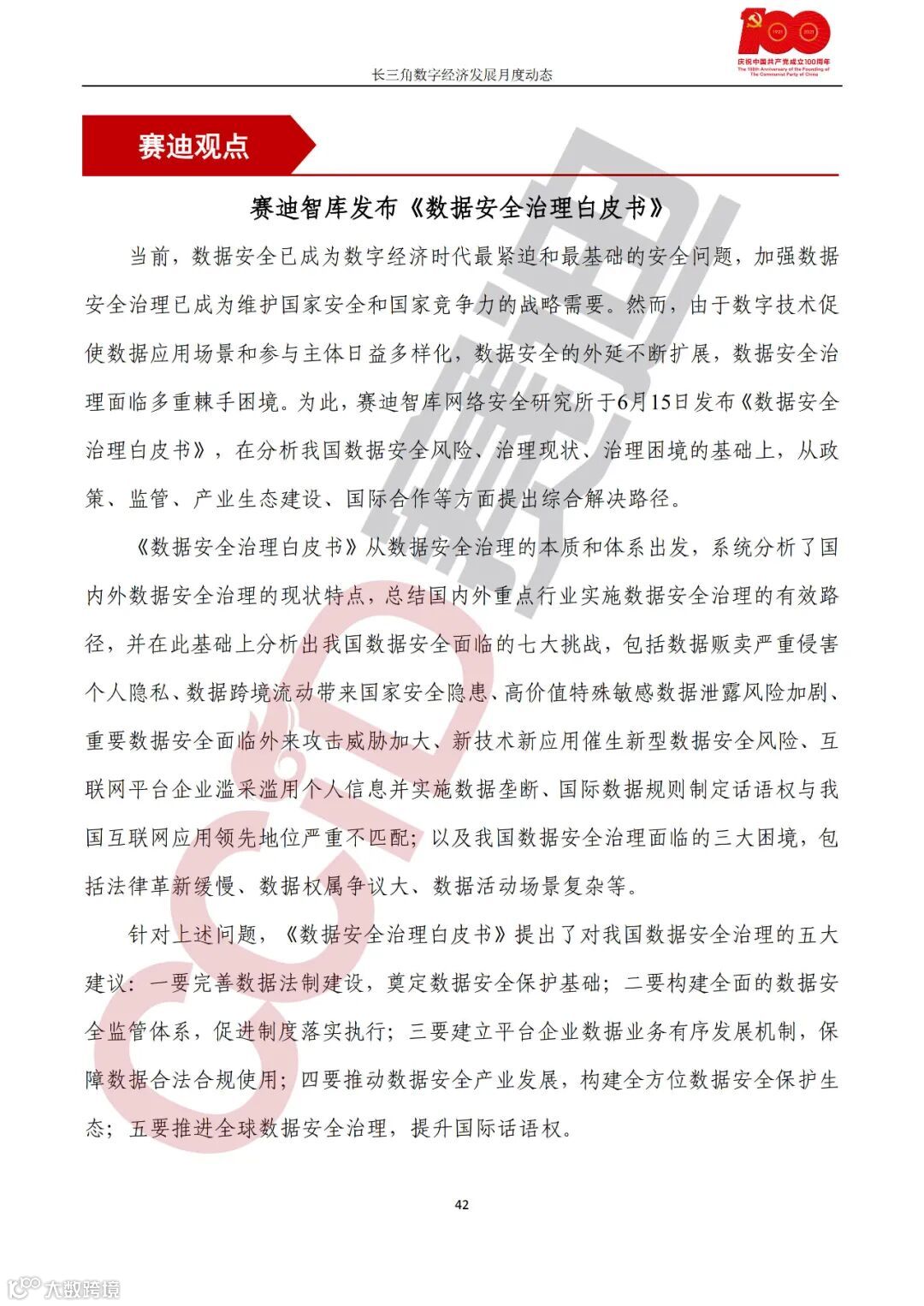 《数据安全治理白皮书》发布。由赛迪智库网络安全研究所编写的《数据安全治理白皮书》于6月17日正式对外发布,《白皮书》在分析我国数据安全风险、治理现状、治理困境的基础上,从政策、监管、产业生态建设、国际合作等方面提出了针对我国数据安全治理的综合解决路径。