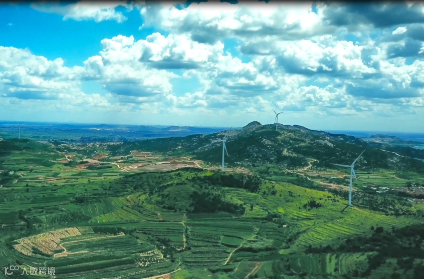 平度东北广袤的丘陵山区,一个个巨大的“风车”旋转不止,昼夜不停,源源不断地化风为能;
