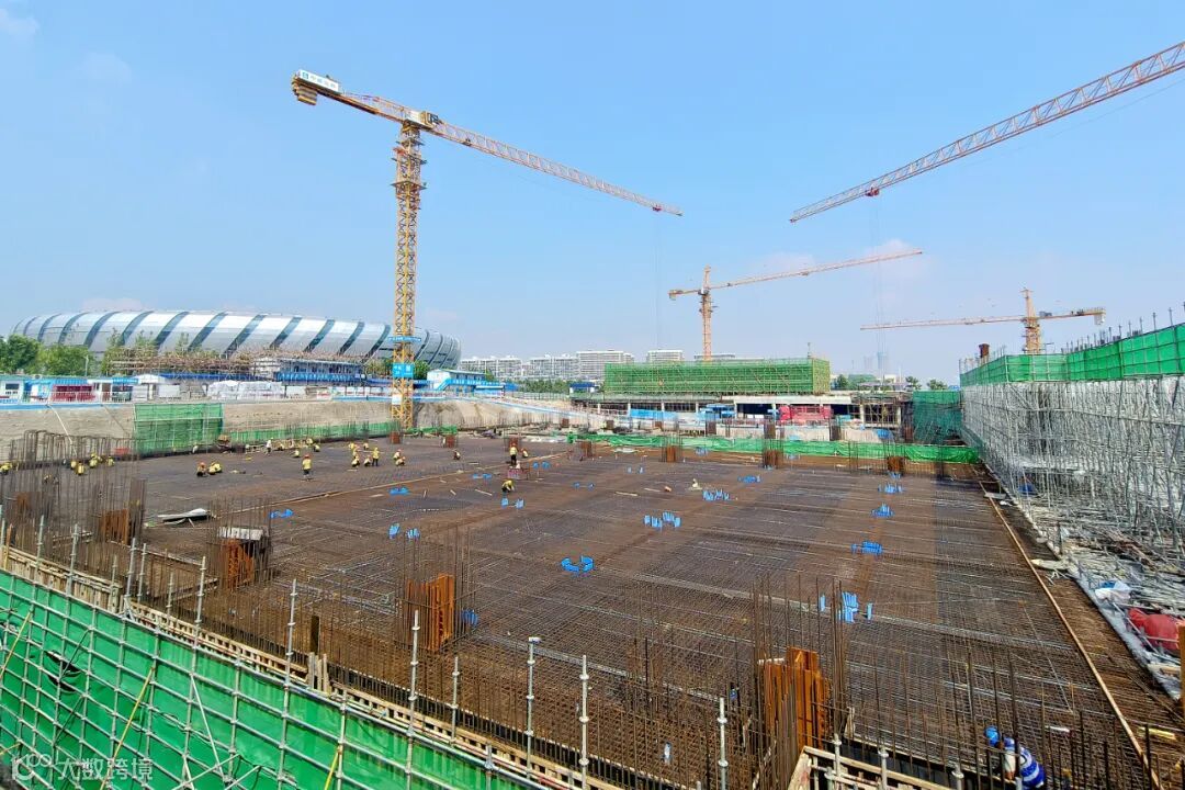 施工中的中国羽毛球协会青岛训练比赛基地及停车场