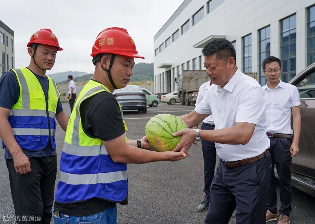 7月21日上午,海高集团工会深入在建项目工地开展“夏日送清凉”活动,为项目一线工人送去西瓜、矿泉水、饮料等防暑降温物品,为一线工人撑起一把防暑降温“清凉伞”。