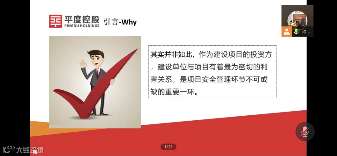 5月16日上午8:00,平度控股“干部职工大讲堂”线上课堂如期举行,城市更新公司的傅文超以“房地产项目的安全管理三、四、六”为题,围绕房地产项目安全管理的三个思路、四大职能、六个阶段深刻讲解房地产安全管理的相关内容,确立目标、分解职责、抓住重点是思路,规划、组织、协调、监督是职能,决策、勘察、招标、施工、营销、运维是重点。