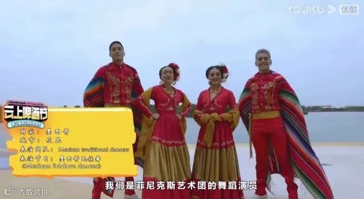 墨西哥菲尼克斯艺术团的演员们带来的墨西哥民族舞,裙摆飞舞,节奏欢快,呈现了一场视觉盛宴。“我们为第32届青岛国际啤酒节献上祝福和好运。准备好了吗?青岛干杯!”墨西哥演员们携手送来祝福。紧接着,画面一转,啤酒节直播现场的主持人和嘉宾们也一起举杯,感谢墨西哥演员们送来的祝福,大家一起高喊:“青岛干杯!”