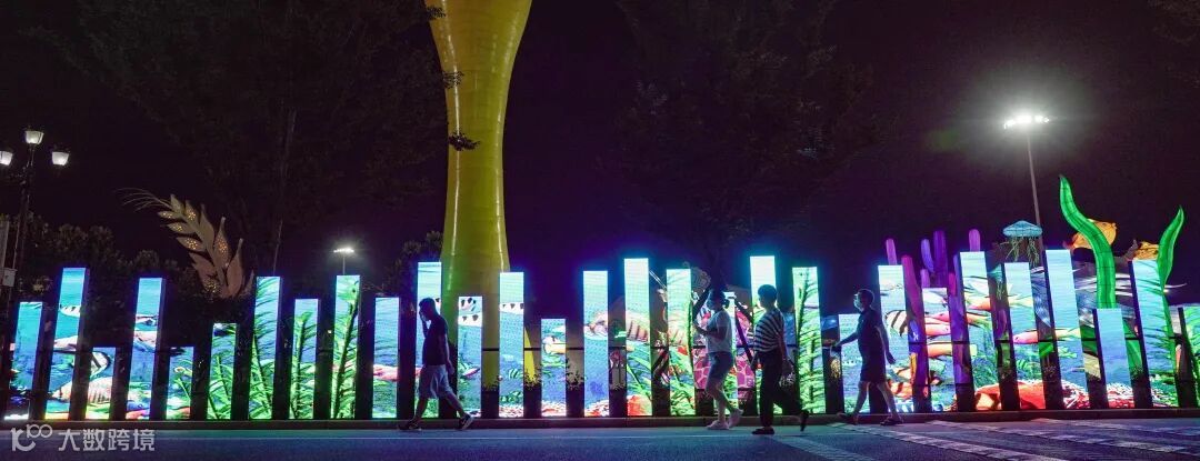 除了“青岛礼物”裸眼3D,啤酒城还在海韵大道中段设置了动感矩阵条形屏。由LED屏幕组成了25米长的条状矩阵,播放极具动态效果的画面,为市民游客营造沉浸式的光影体验。