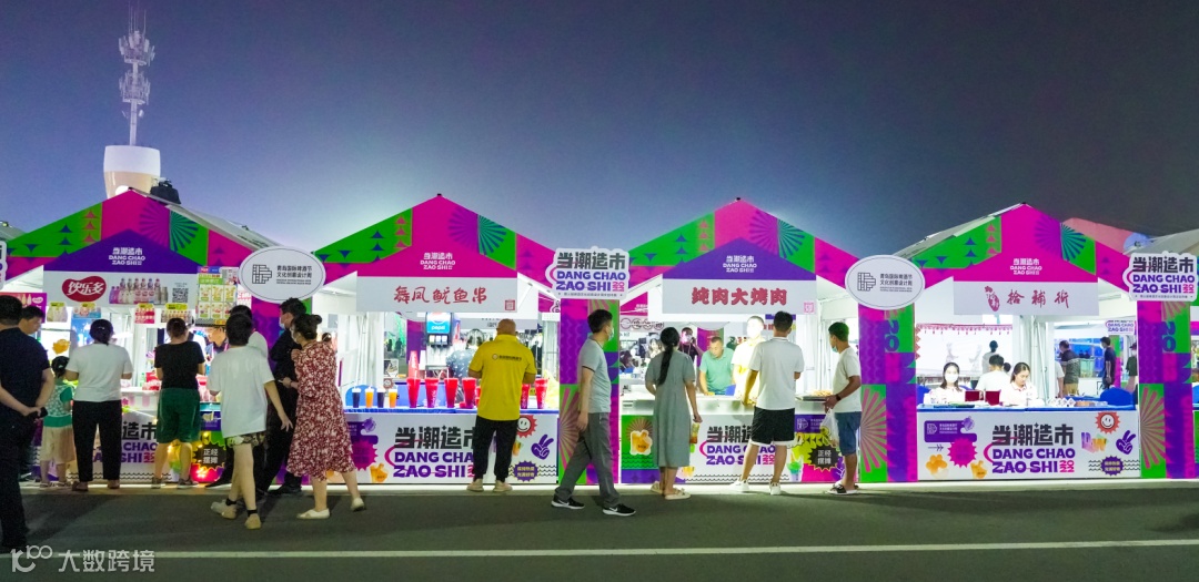 夜晚,位于金沙滩啤酒城西演艺广场的第三届啤酒文化创意周——山东手造文创市集热闹起来。