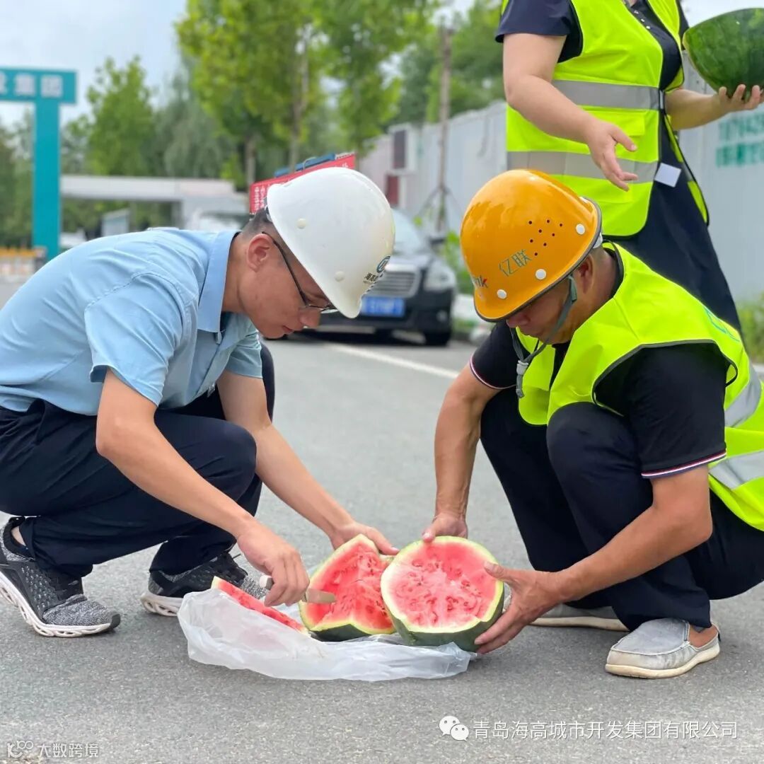 海高集团工会工作人员来到施工现场,为在烈日炎炎下作业的施工人员送去清凉物资,并叮嘱一线工人在铆足干劲建设的同时做好防暑降温,确保安全生产。
