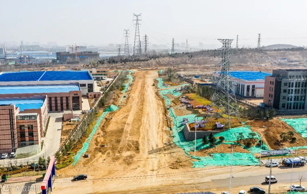 ▲海洋装备产业园陡楼山路西延工程:给排水及电力排管工程完成90%,绿化工程完成75%,路基工程完成90%。
