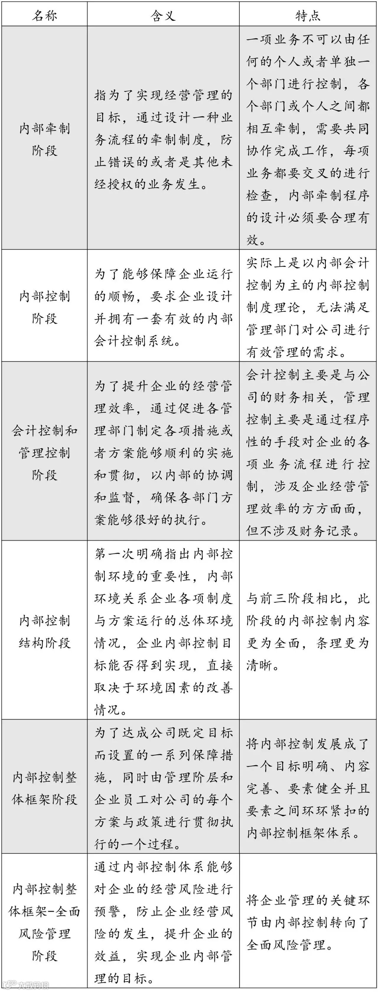 表1:内部控制六阶段发展历程