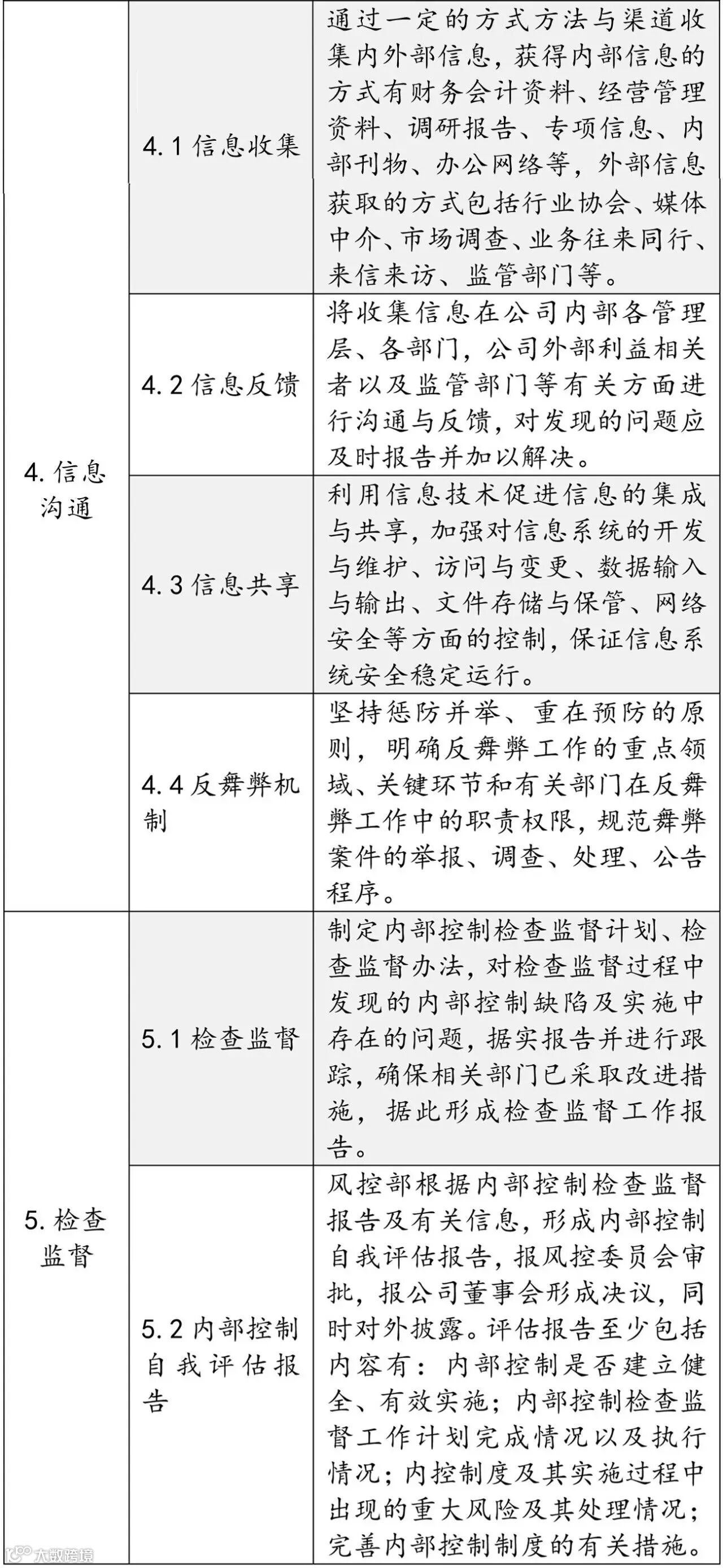 信息沟通。贯穿于内部控制程序的全过程,主要包括信息收集机制、信息沟通机制、保密管理、信息技术整体控制等。