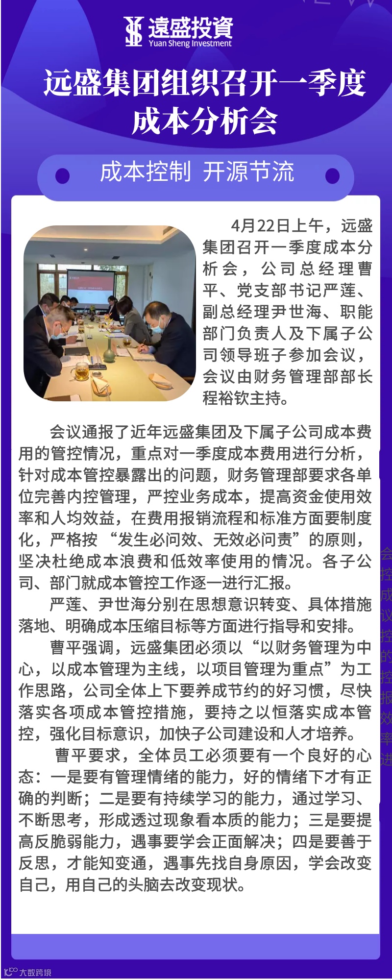 成本控制 开源节流 | 远盛集团组织召开一季度成本分析会