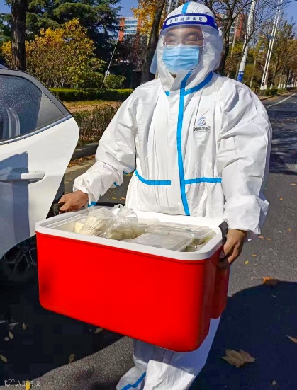 作为黄岛公安分局物业服务项目负责人,宋瑞雪同志不仅要负责物业工作的正常运转,还积极参与一线的保障工作。他既要当“后勤员”,接收各类防疫物资,在最短时间内带领工作人员协助公安局搬运方便面、榨菜等抗疫物资600余箱;还补位充当“战斗员”,利用休息时间,一次次在非封控区与封控区之间穿梭转运,及时将防疫物资送至一线人员的手中,经常一忙就是一整天,几乎吃不上一顿“囫囵饭”。