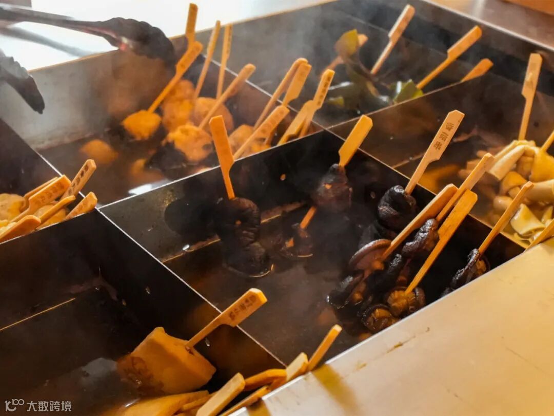 与普通关东煮不同,茶香味是店内关东煮最独特之处。黑椒脆骨、白玉萝卜、波浪鱼饼……普通的食材经过茶香的烧煮,多了几分风味,口味更加鲜美。这里的汤底采用了安徽的黄大茶作为底料,泡出的汤色浓厚,滋味醇和。