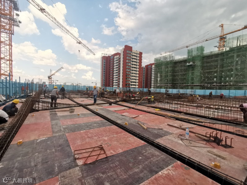 图·A塔楼正在进行十三层底板钢筋绑扎
