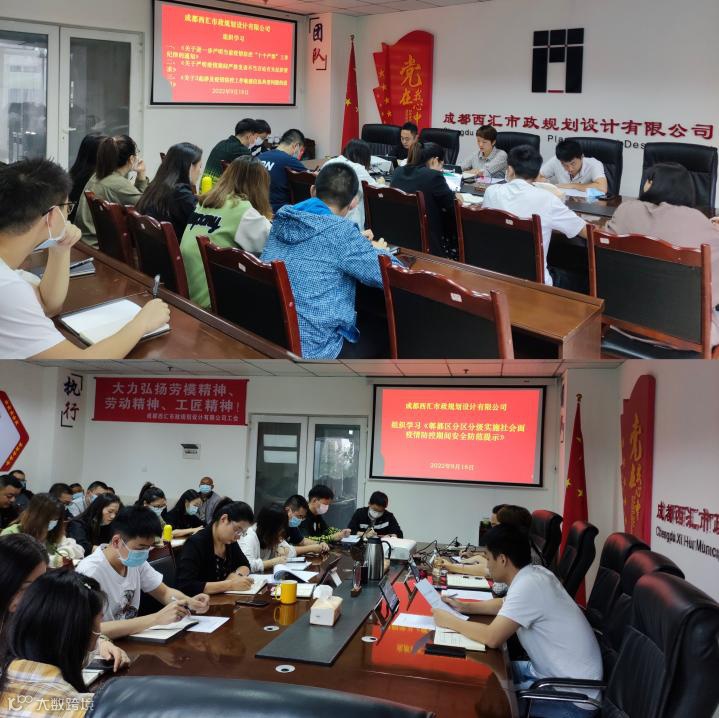 成都西盛投资集团有限公司9月16日,西汇市政公司召开专题会议,组织学习了分区分级实施社会面疫情防控期间安全防范提示,和加强疫情防控期间舆情引导等文件精神。