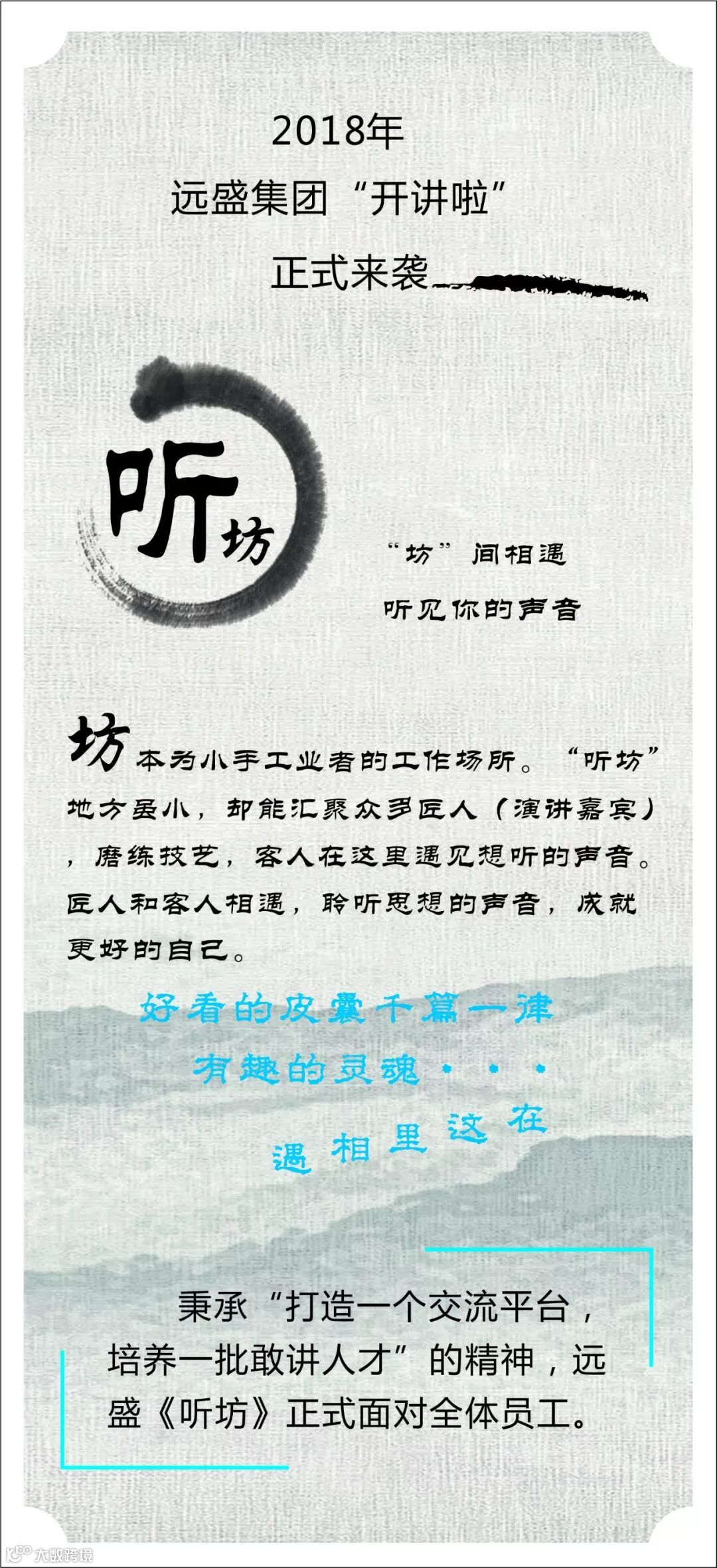导读:2018年,远盛全新打造系列公开课活动《听坊》正式上线,敬请期待。