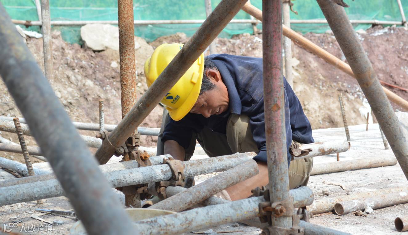 上午11点,室外温度37℃,K71+780涵洞施工现场,工友们已经下班准备午餐,但为了保证下午施工的安全,陈师傅顶着烈日对脚手架进行检查。