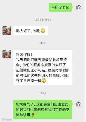 汇美公司打破传统管理模式,以“邻居”身份融入租户中间,通过节日欢聚活动、“客厅式”茶话会等载体,营造无拘束的交流氛围。莘荟公寓租户在轻松环境中畅谈居住体验,提出服务建议,汇美公司及时聆听反馈、传递工作进展,有效增强了彼此信任与情感联结。