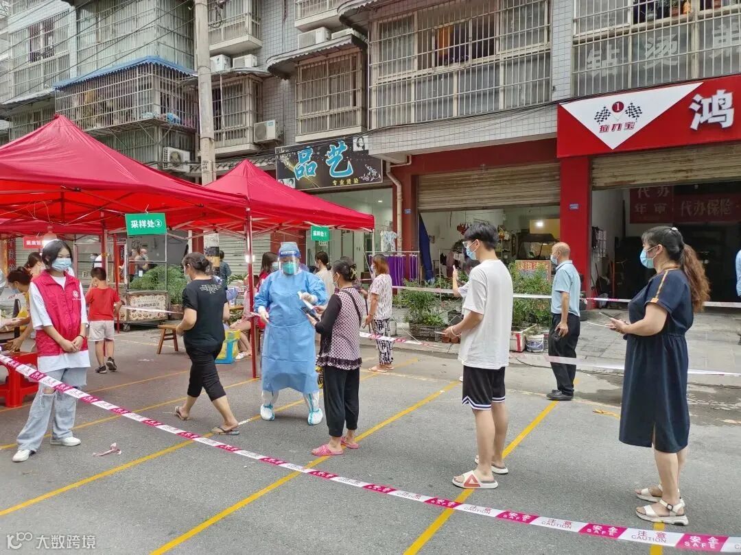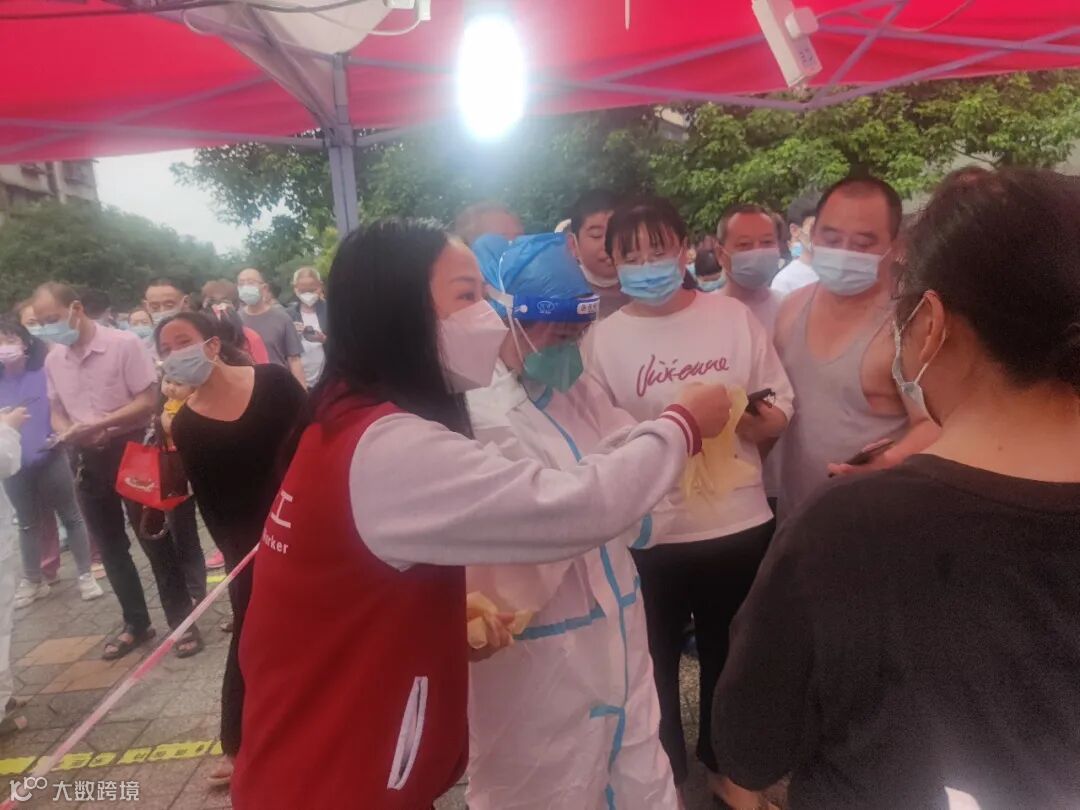 关卡四:由医护人员进行核酸采样。通过4层关卡后,由末端志愿者引导居民从出口有序离开。