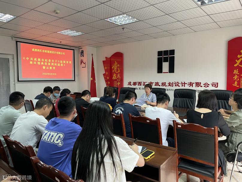 根据区纪委关于转发《中共成都市纪委关于6起损害营商环境典型案例的通报》文件要求,6月30日,西汇市政公司组织开展警示教育学习专题会,会议由总经理李鲁黎主持,全体员工参加。