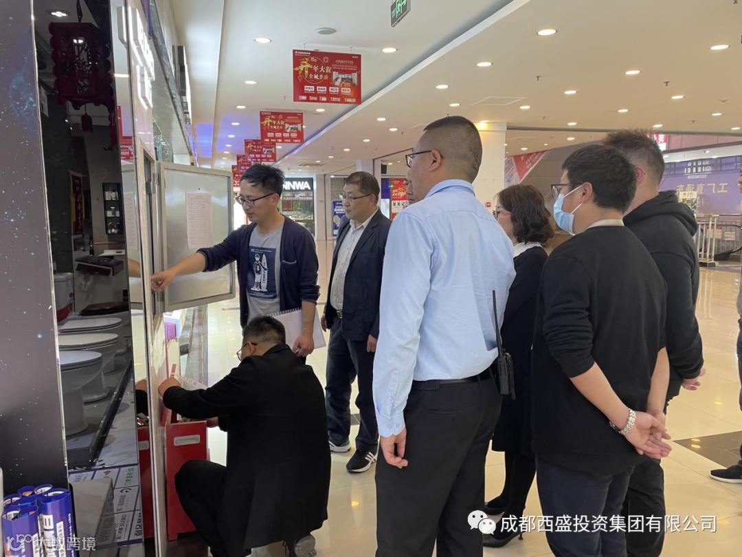 3月29日,区国资金融局局长唐浩带队,赴西盛集团对在管的西都会商业综合体凯信家居装饰城进行消防安全大巡查,西盛集团副总经理殷本康陪同巡查。