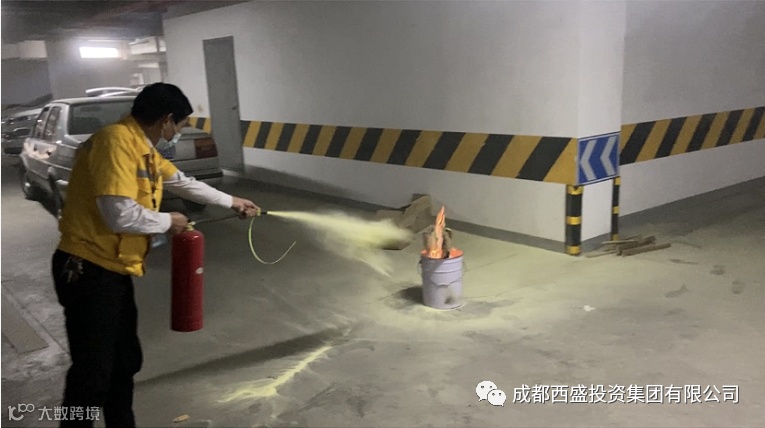 此次消防演练选择公司重点防火单位“杜鹃公园地下停车场”,采用“突击”形式进行,在不发通知、不打招呼的情况下,公司检察人员随机模拟火情,杜鹃公园地下停车场值守人员从监控系统发现异常,到拿起灭火器到达起火点现场灭掉火源用时15秒,作出了快速的反应