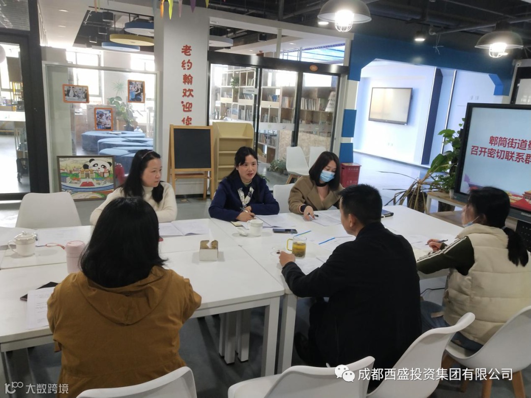 为深入开展密切联系群众“三固化”工作,3月15日,西盛集团党委副书记代晴霞深入郫筒街道蜀都新邨社区召开3月密切联系群众“三固化”联席会,了解2021年2月社区走访群众收集问题情况,并对2021年三固化办实事项目进行讨论。