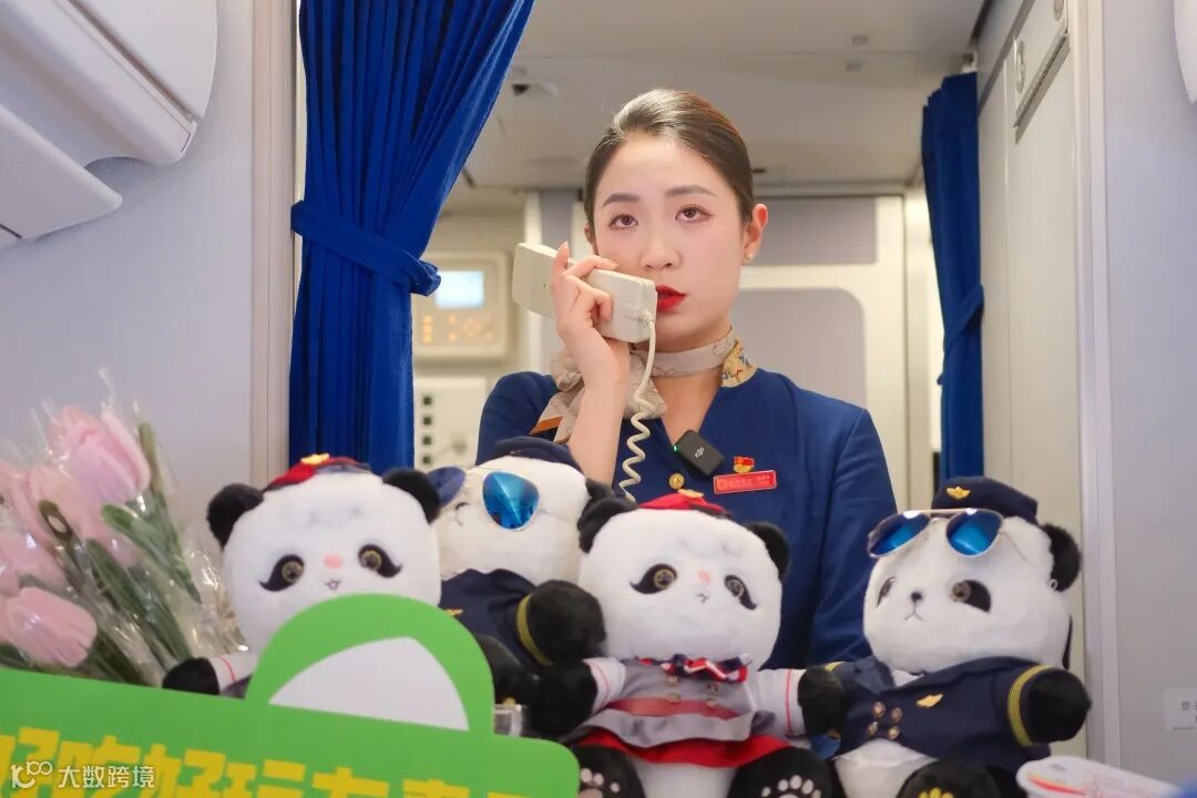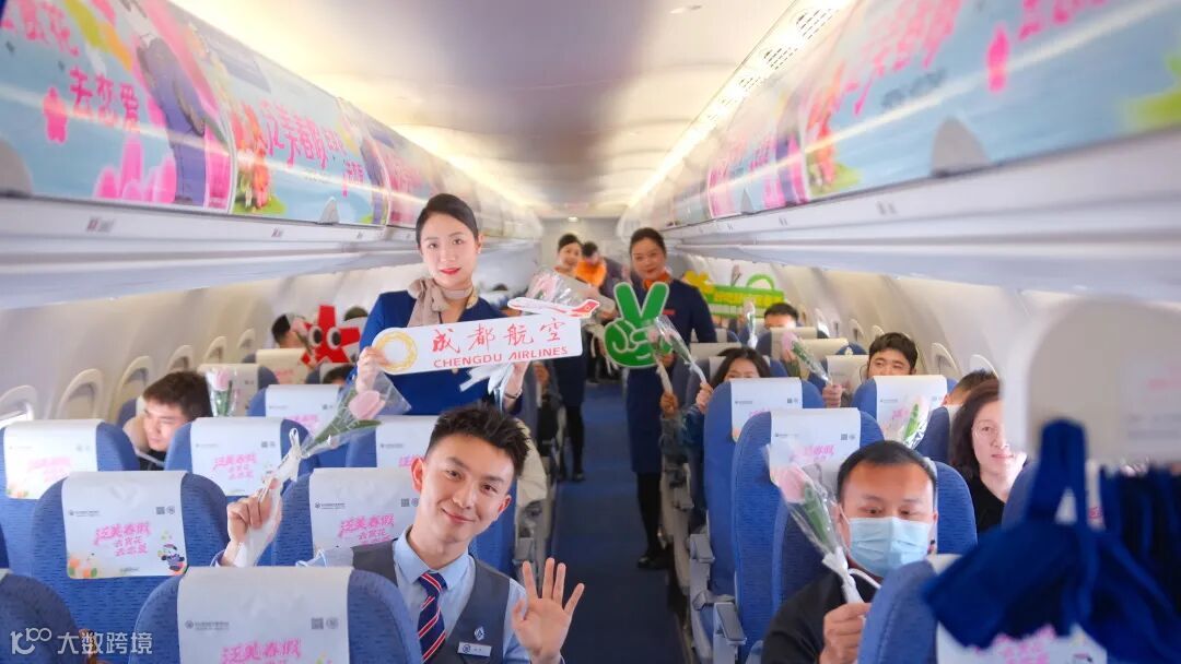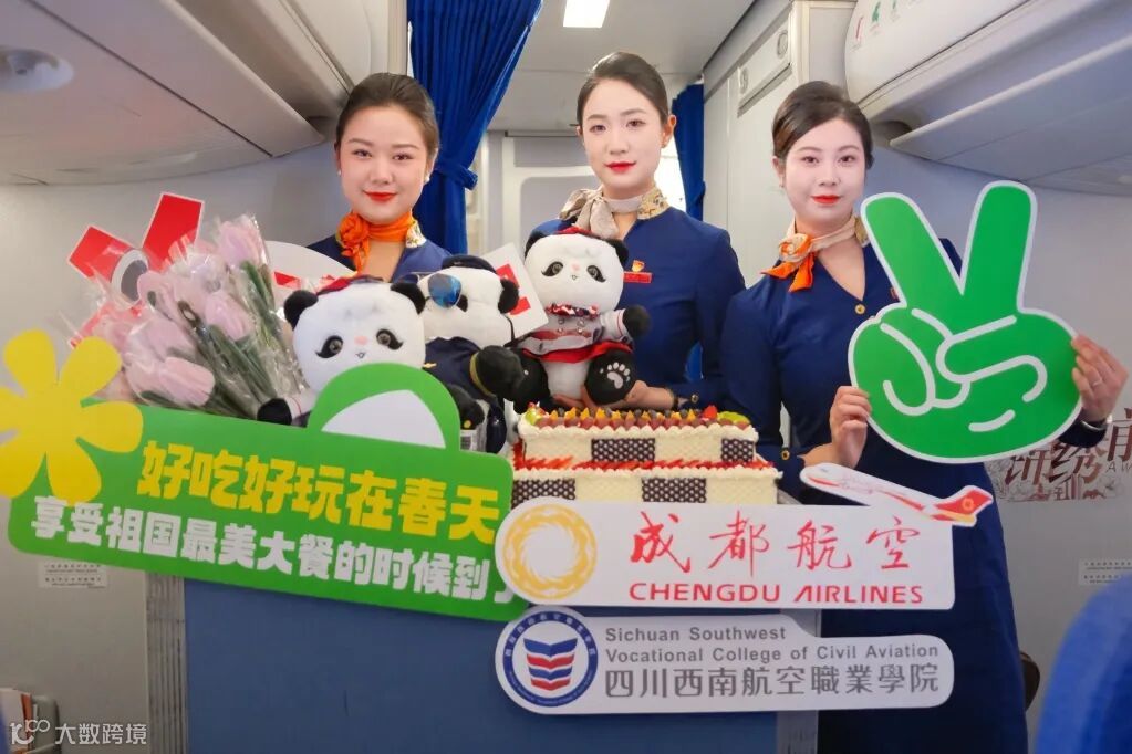 值得一提的是,本次航班的乘务组都是毕业于四川西南航空职业学院的校友。她们从西航毕业后进入成都航空,如今又在“泛美号”上与母校隔空联动,共同传递着这份春日的温暖。