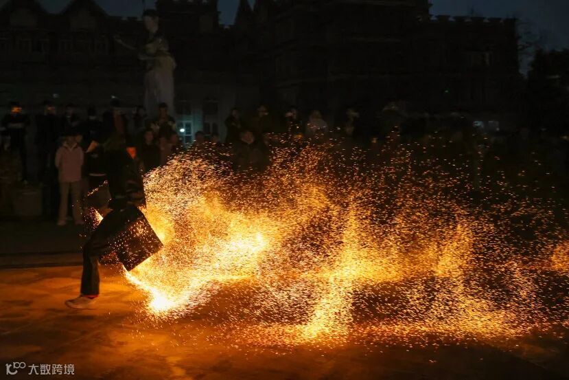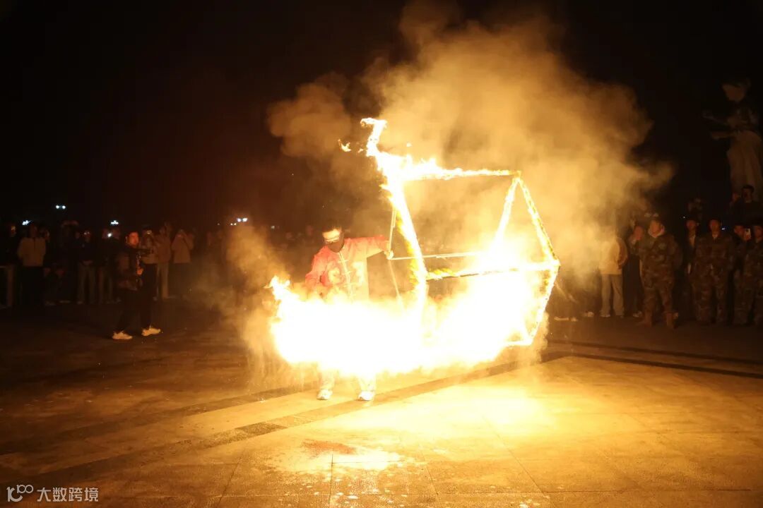 喷火表演烈焰冲天,气势如虹;火魔方流光转动,奇妙绚丽;火扇翻飞似蝶,柔中带刚;火壶舞动生风,炽热奔腾。火焰在夜空中交织绽放,仿佛千年技艺在此刻复活,瞬间点燃全场激情。线上线下观众同步屏息凝视,共同感受这场直击人心的火热盛宴。