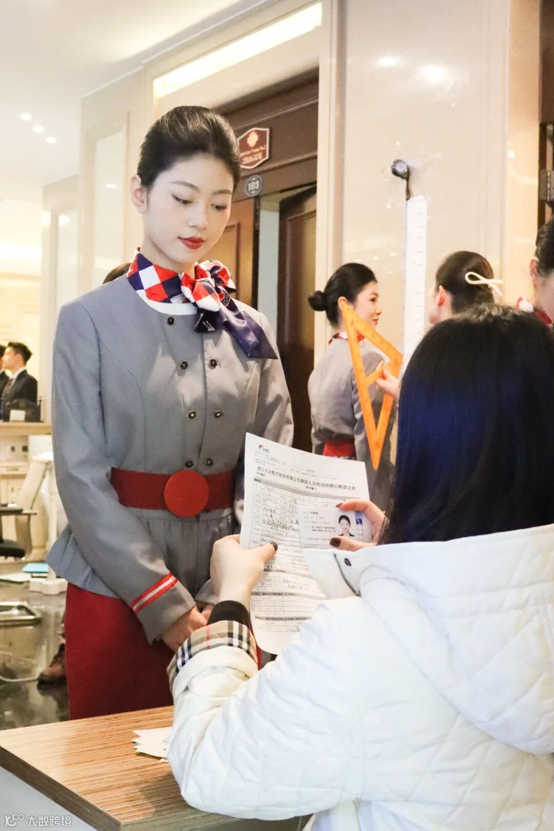 本次面试分为海选、身高测量、初试、复试等环节,考核不仅注重外表形象,亲和力、言语表达、随机应变能力等也是考察的重点。