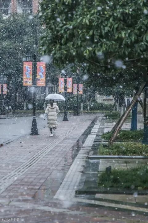入冬,细雪轻柔飘落,建筑风骨愈显,静谧中蕴藏着力量,校园仿佛在做一个洁白而宁静的梦。
