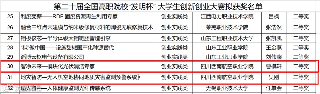 图| 全国高职院校“发明杯”大学生创新创业大赛决赛获奖名单