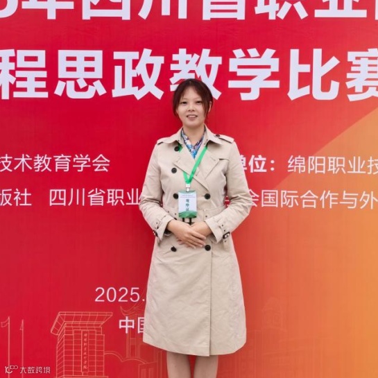 外语教研室主任。曾获四川省外语微课优秀作品征集与交流活动优秀作品三等奖;获评 “2024 市赛优秀指导教师”、“泛美杯英语风采大赛优秀指导教师;参编《英语语法汇编手册》、《英语练习册》、《无人机维护与操控专业英语》。