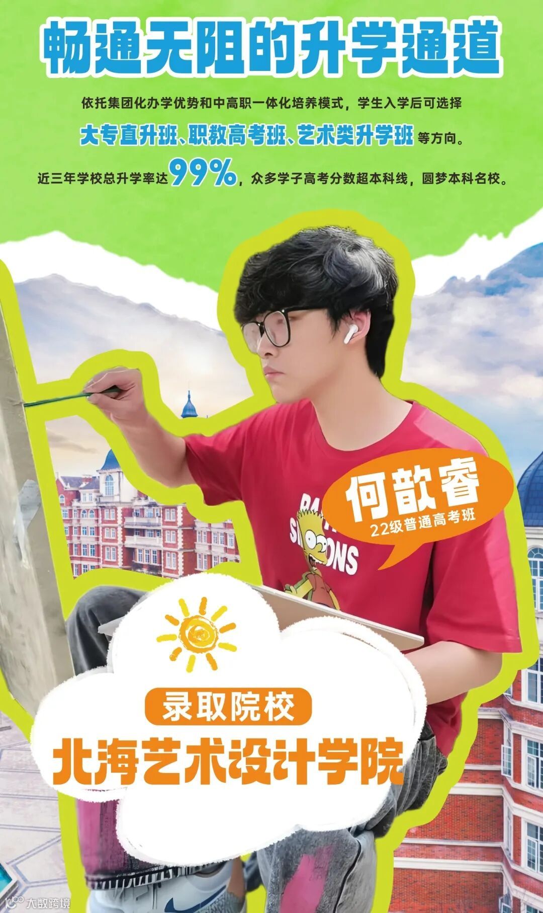 2022级普通高考班,升学至北海艺术设计学院动画专业。2025年高考综合456分,超出本科线34分,成功被北海艺术设计学院录取,圆梦本科。曾多次参加校级、市级手抄报比赛。