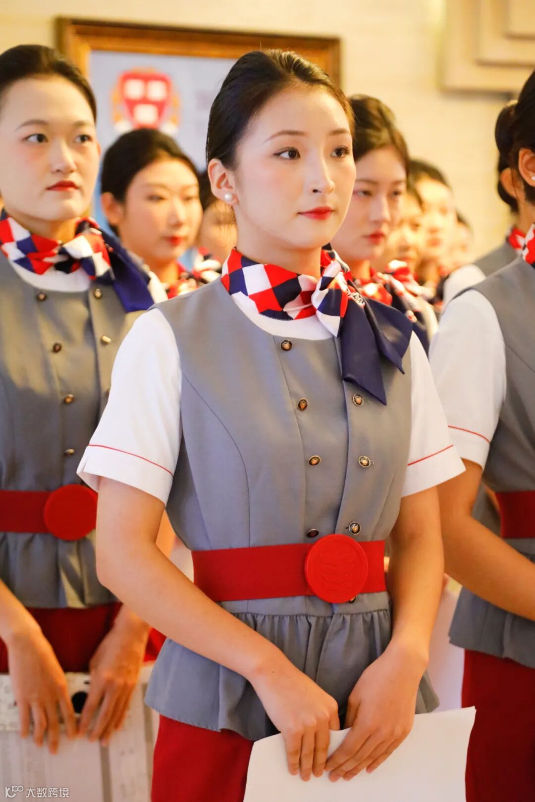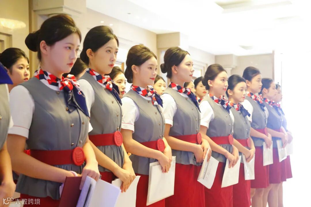 或是相互整理着装,或是修补妆容、调整发型,或是默默背诵精心准备的自我介绍,或进行表情管理练习……对细节的极致追求,正是空乘职业素养的初步体现,也彰显了在标准化军事化管理下职业化塑造取得的显著成效。