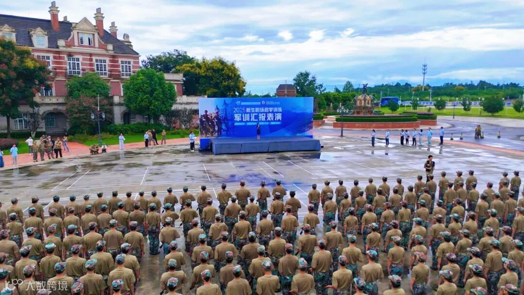 在军训总指挥肖永飞教官的带领下,西点军校22条军规化作铿锵有力的誓言,在训练场上空久久回荡。那不仅是纪律的宣言,更是青春的承诺。紧接着,“完善自我,创造生活”的校训被连续高呼三次,每一次呼喊都凝聚着对未来的无限憧憬与坚定信念。