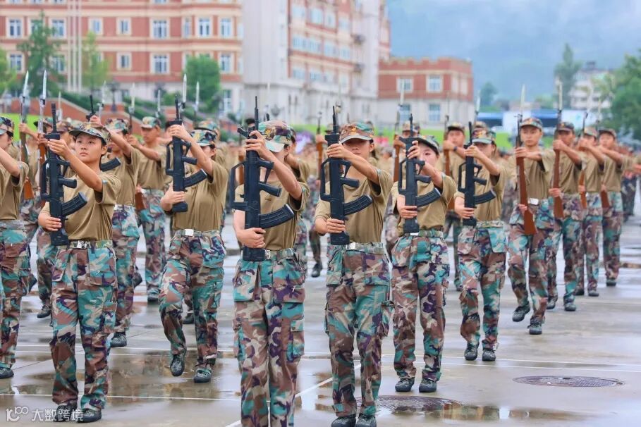 紧随其后的刺杀操以实战为背景,喊杀震天,突刺迅猛,队形疾变,瞬间把气氛推向最高潮,尽显新时代学子昂扬斗志。