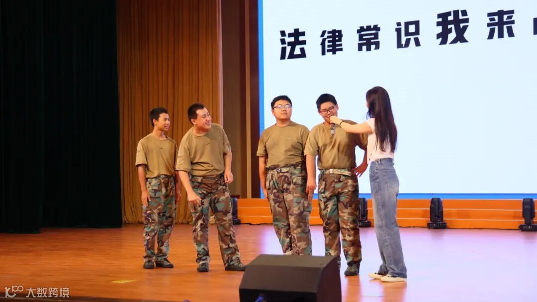 课堂伊始,唐昕校长别出心裁地设置了“法律盲盒”互动环节。她邀请4位同学上台,每人选择一个话题,如“经济类”“校园类”“肖像类”等,请同学们判断这些行为是否构成违法犯罪。同学们积极回应,现场气氛热烈。唐校长在互动中适时引导,指出哪些行为可能触及法律红线,让同学们在游戏中初步建立起法治意识。