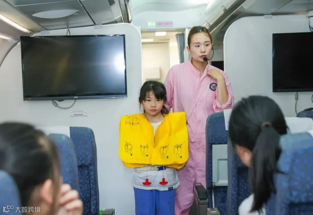 通过模拟舱演练学习飞机迫降处置流程,掌握救生衣穿戴等技能,结合应急指示灯识别和救生筏操作,培养安全自救能力。