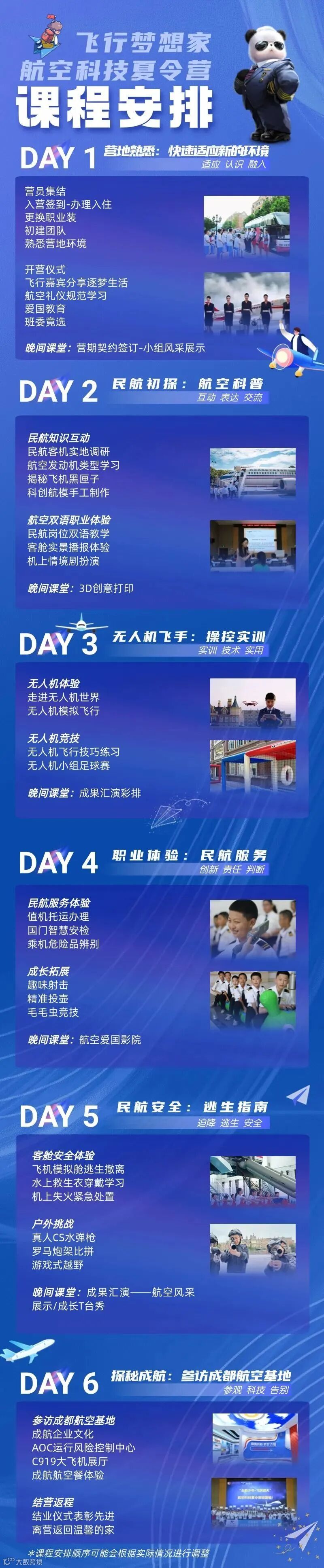 抵达营地后营员签到并领取物资,办理入住后换上统一的航空主题营服。通过宿舍互动结识队友,初建团队;参观营地,熟悉日程安排和生活动线,为后续活动做好准备。